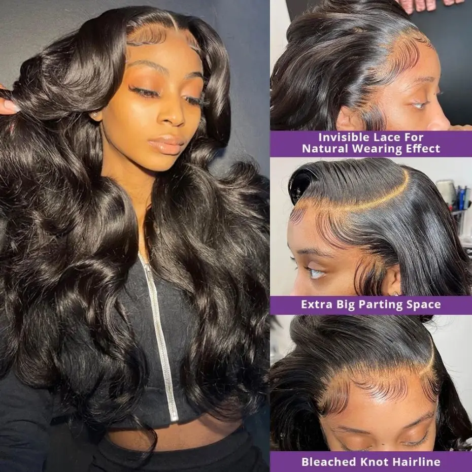 Color: #1, Ships From: CHINA, Stretched Length: 32inches, Density: 150% - 13x6 13x4 Body Wave Glueless Wig HD Transparent Lace Front Wig Human Hair Pre Plucked Brazilian 4x4 Lace Closure Wigs For Women