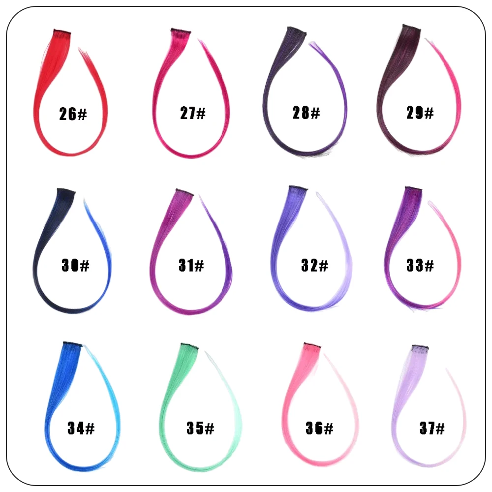 37 Colored 22" Long Straight Ombre Synthetic Hairpieces Hair Extensions Pure Clip In One Piece Color Strips Hairpiece for WomenÂ