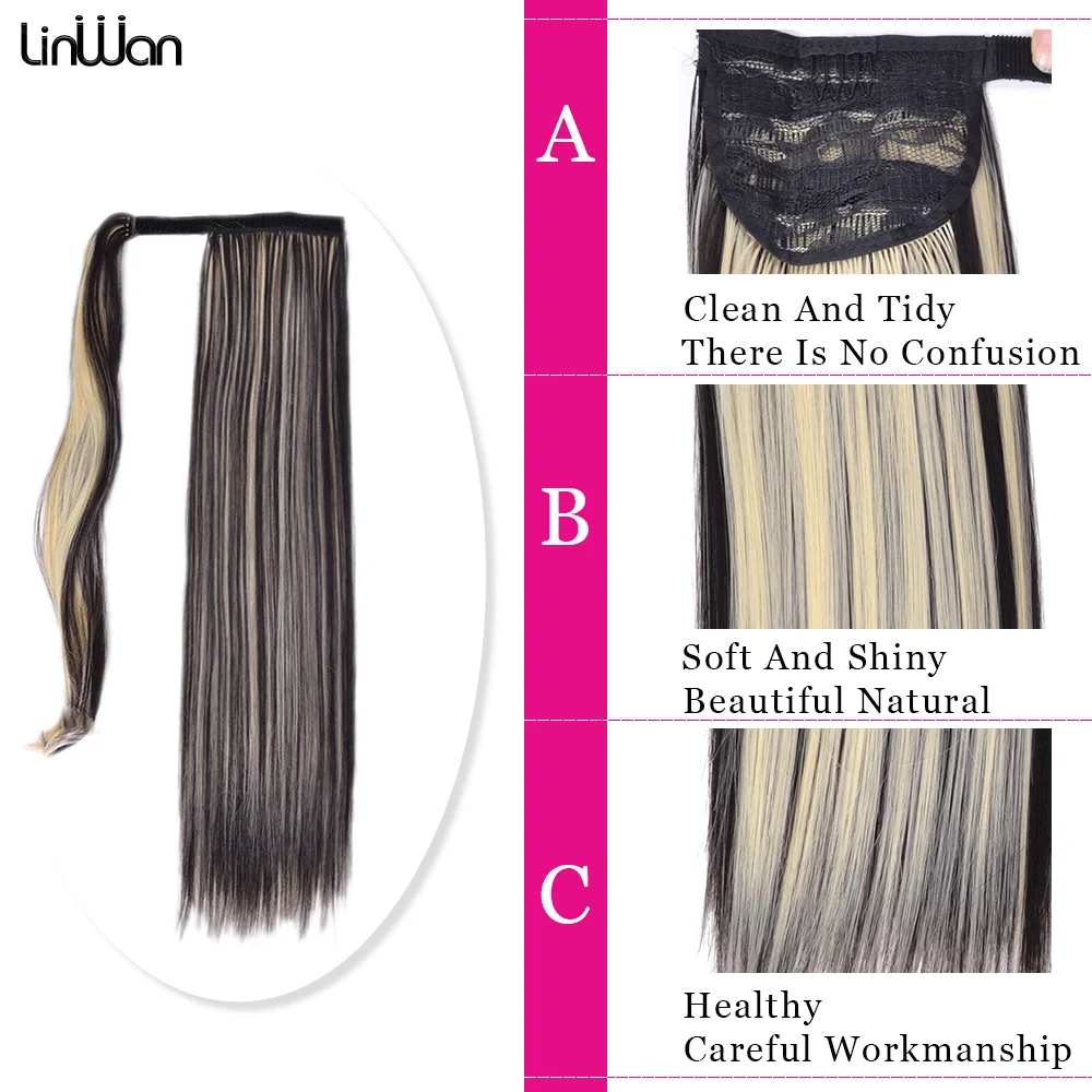 Color: #18 - LINWAN Synthetic Long Straight Wrap Around Clip In Ponytail Hair Extension Heat Reistan Pony Tail Fake Hair