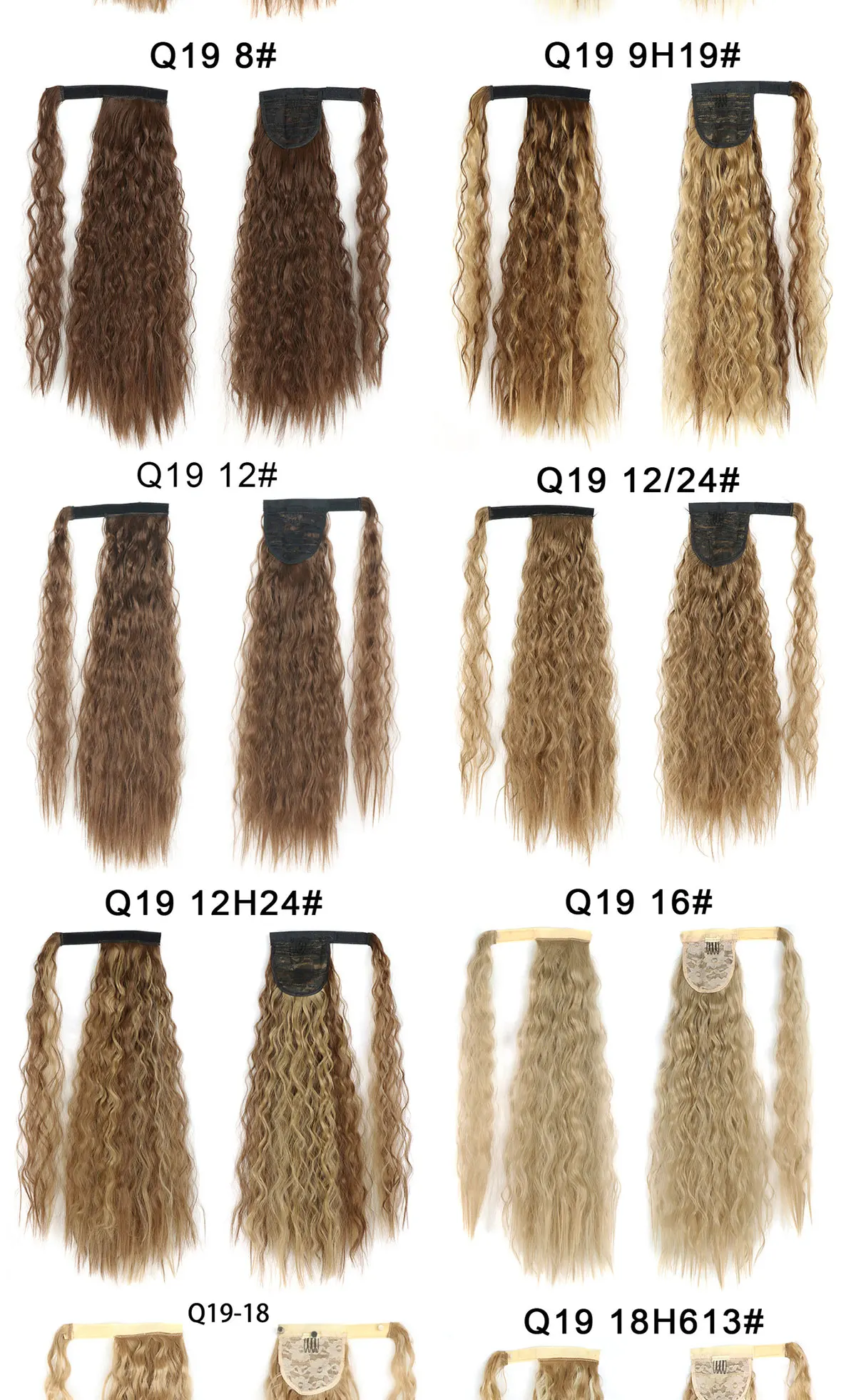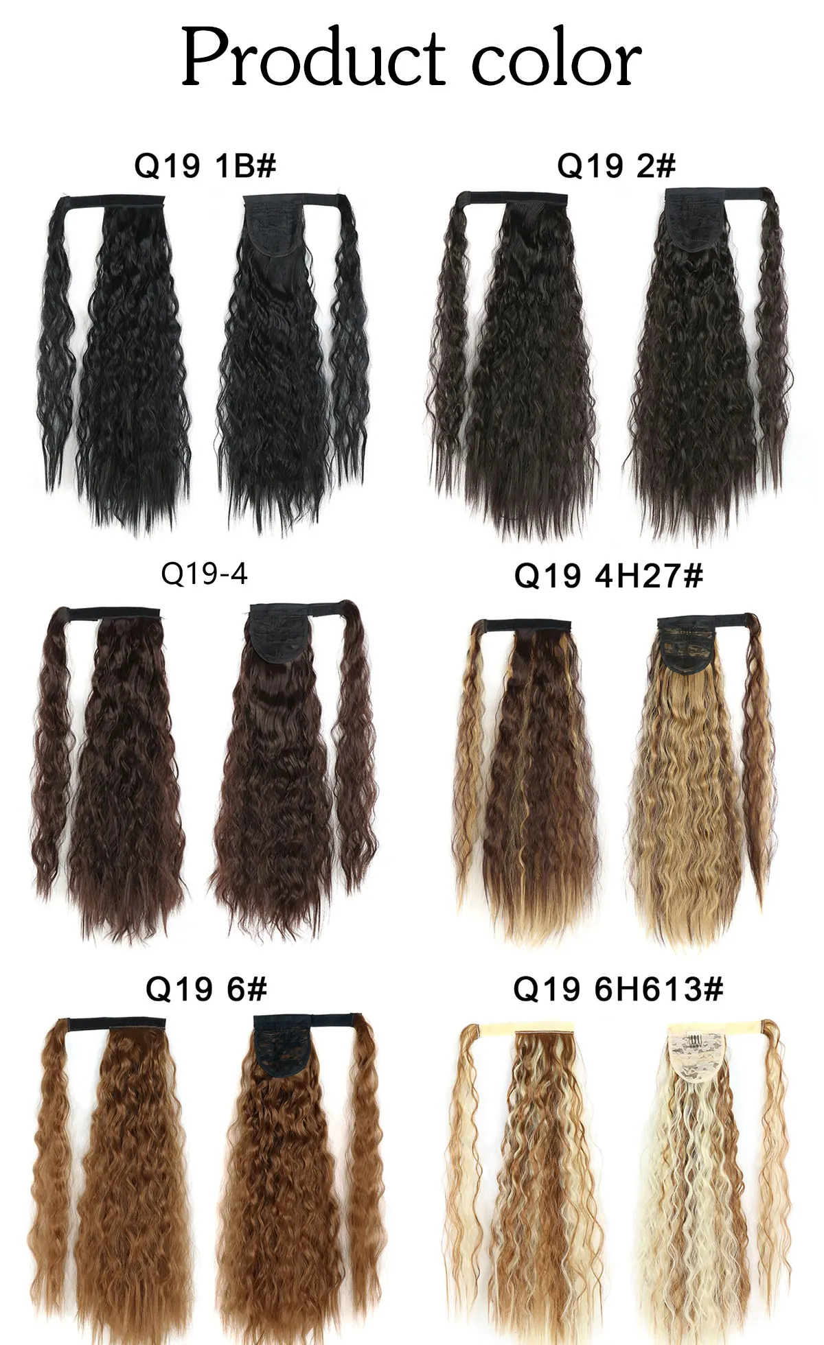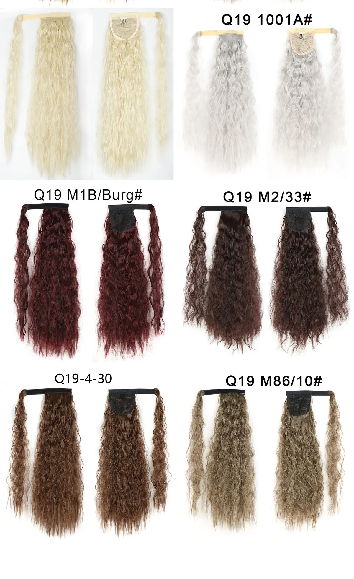 Color: 1B/30HL, Stretched Length: 24inches - Synthetic Long Corn Wavy Ponytail Hairpiece Wrap on Hair Clip Ombre Brown Blonde Hair Extensions Pony Tail