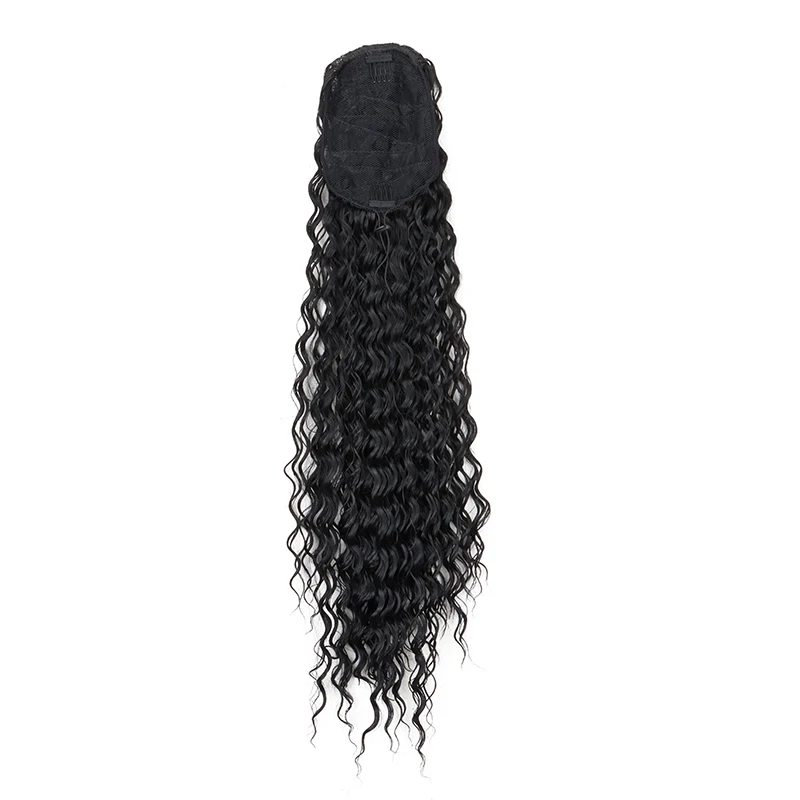 Color: 1B/30HL - Synthetic Long 22Inch Kinky Curly Ponytail Extensions Clip in Drawstring Ponytail Wig Afro Pony Tail Women Hairpiece