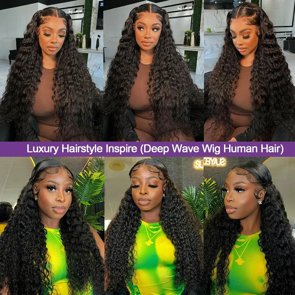 Color: #1B, Ships From: CHINA, Stretched Length: 22INCHES, Density: 150% - 13x4 13x6 Deep Wave HD Lace Front Wigs for Women Pre Plucked Brazilian 4x4 Lace Closure Human Hair Wig Curly Lace Frontal Wigs