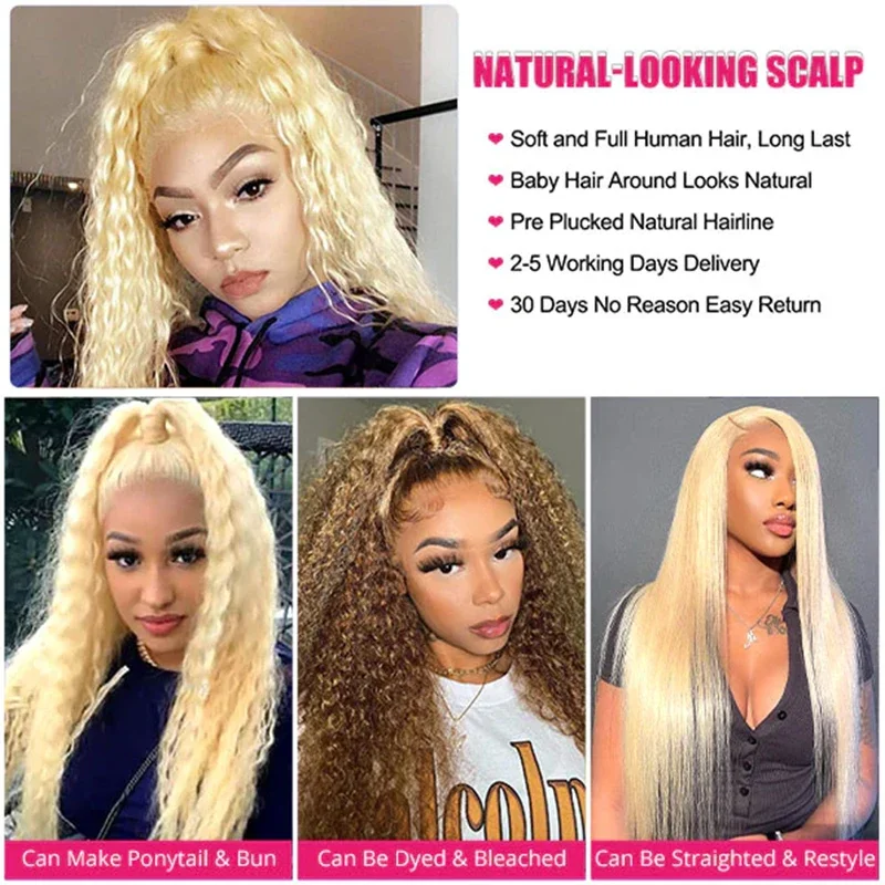 Color: #1B, Ships From: CHINA, Stretched Length: 30inches, Density: 150% - 613 Blonde Curly glueless 13x6 Transparent Hd lace front wig Deep Wave human hair 36 inch Brazilian wig pre plucked for women