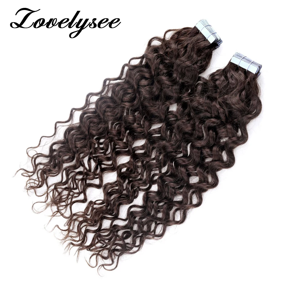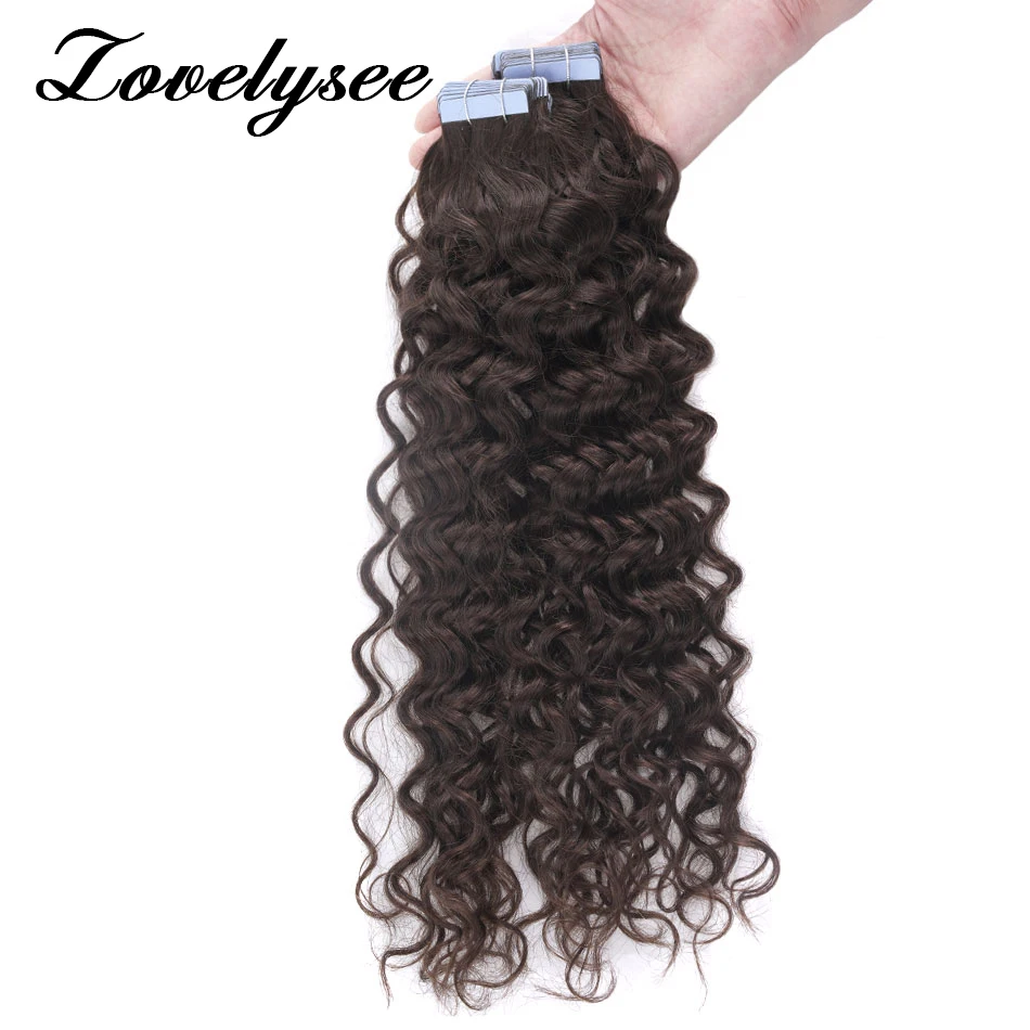 Color: #2, Length: 22 inches, Items per Package: 20 pcs - Water Wave Tape in Human Hair Extensions 2g/pcs Dark Brown Real Human Hair Adhesive Invisible Keratin Hair Extensions for Women