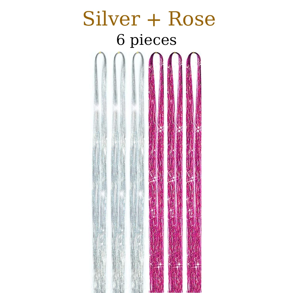 Color: #2, Stretched Length: 24inches - 48 Inch Hair Tinsel Kit With Tool 1200 strands Tinsel Hair Extensions 12 Colors Fairy Hair Tinsel, Sparkling Shiny Hair Tinsel