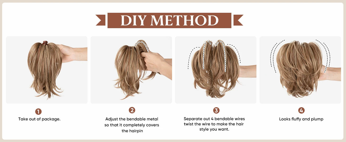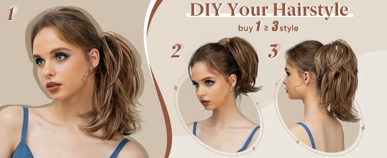 -Wearing method: According to the length of your own hair, you can have 3 different wearing methods(For details, please refer to the wearing video above)