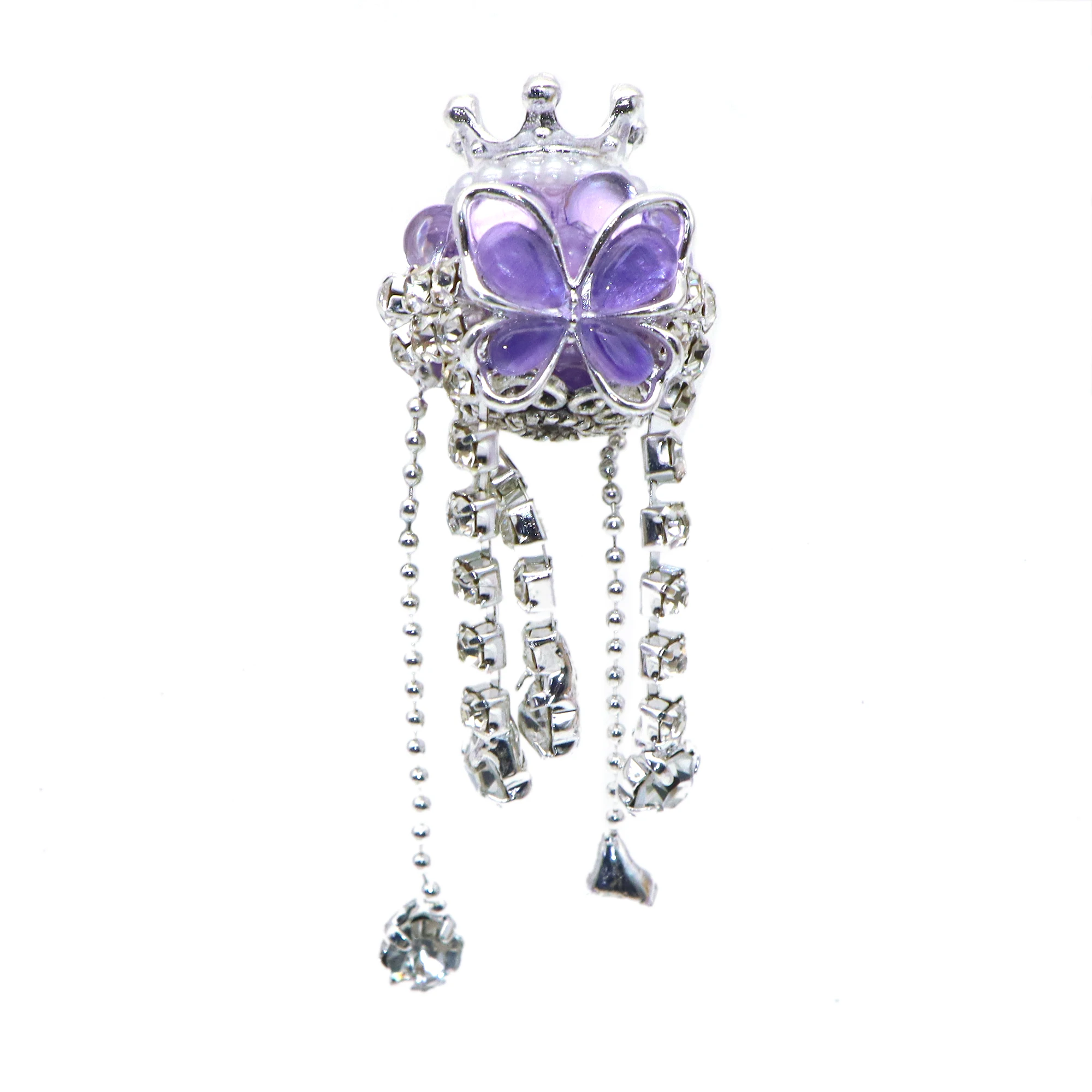 Color: antique silver - 1Pc Luxury Butterfly Rhinestone Faux Crystal Beads Opal Effect with Tassel Loose Spacer Beads with Hole Jewelry Making DIY Brace