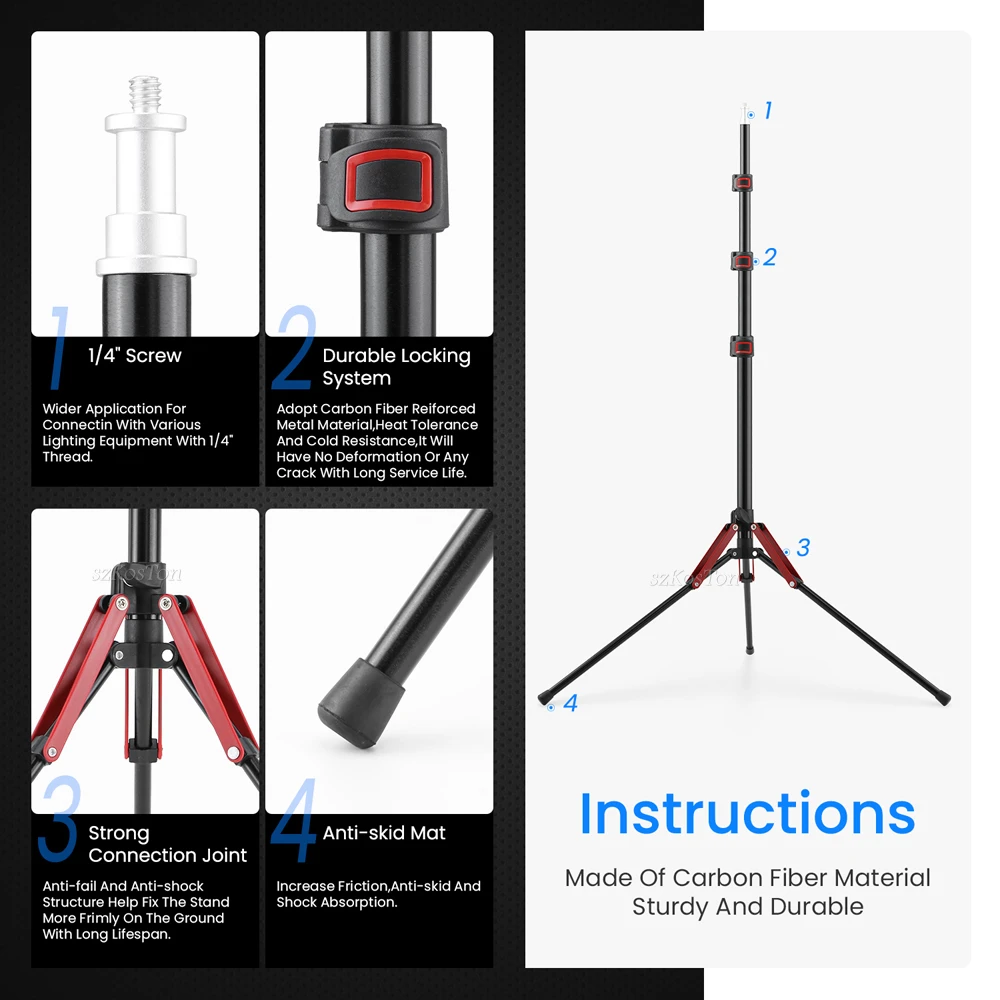 【Durable Material】Made of aluminum alloy.Outer structure is anti-corrosion, anti-rust and long-lasting, Protecting the light stand from air pollution and salt exposure Strong enough to handle any sized lighting equipment.