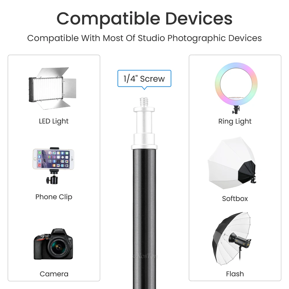 【WIDE COMPATIBILITY】Come with a 1/4'' Universal Adapter is applicable to most photographic equipment, such as strobe lights, softbox, umbrellas,flash light, and reflector. Perfect to use outdoor and indoor, giving you a great support to meet various photo or video shooting situations.Three levels of height adjustment can be set freely according to the actual use scene.