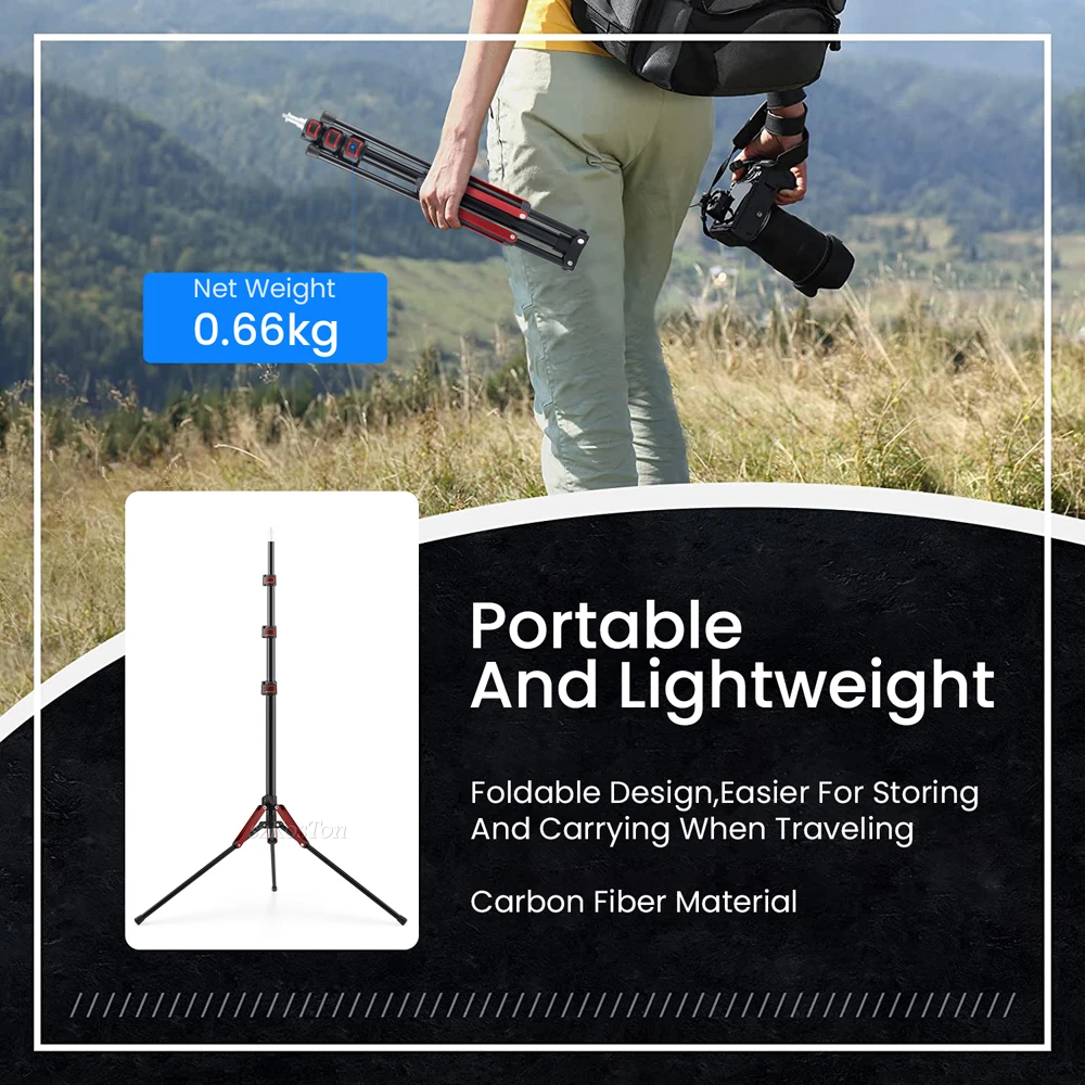 1.9M/75Inch Carbon Fiber Light Stand Photography Light Tripod Monopod Light Bracket for LED Video Light Flash Travel 1/4 Interface