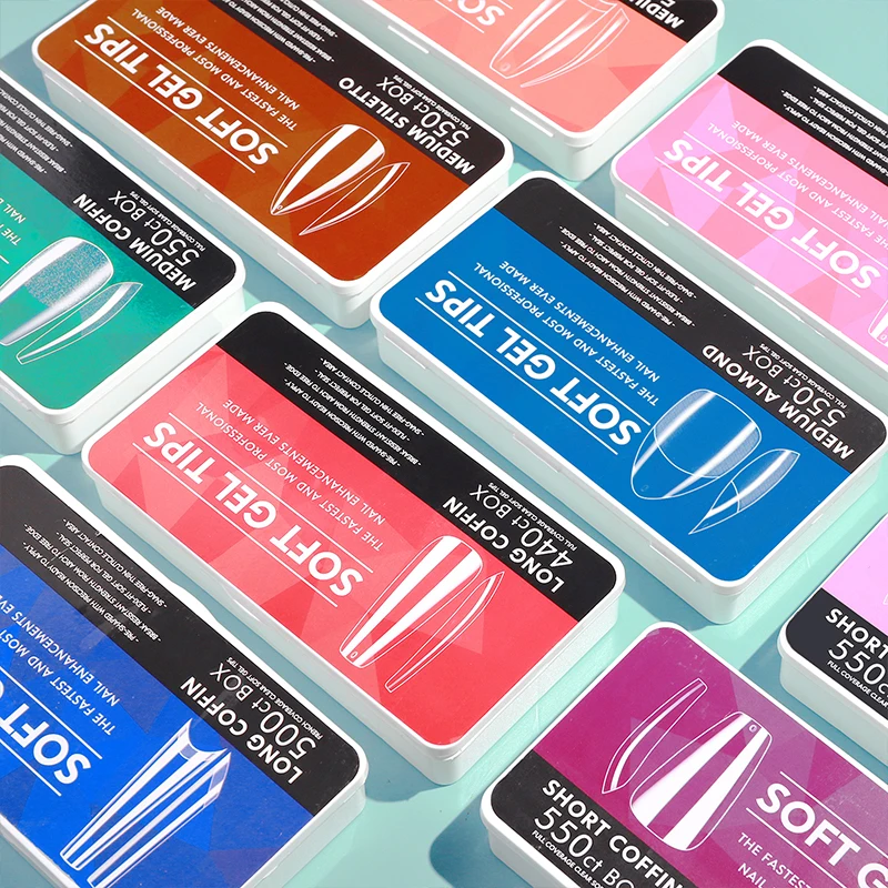 1 Box Clear Acrylic Long Fake Nails Capsules Almond French Coffin Full Half Cover False Nails Artificial Nail Soft Gel Tips
