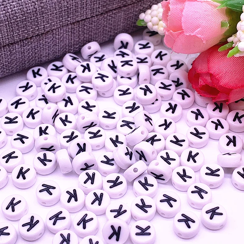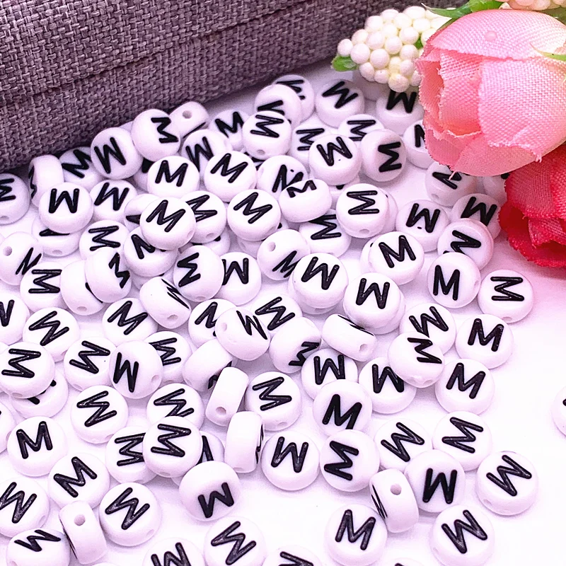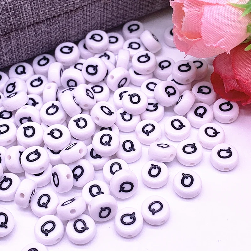 Color: Army Green - 100pcs/lot 7x4mm 26 Letter Beads Round Shape Beads Alphabet Letter Charms for Make Jewelry Accessories