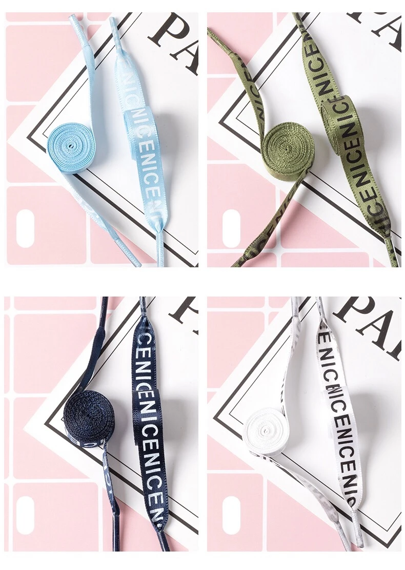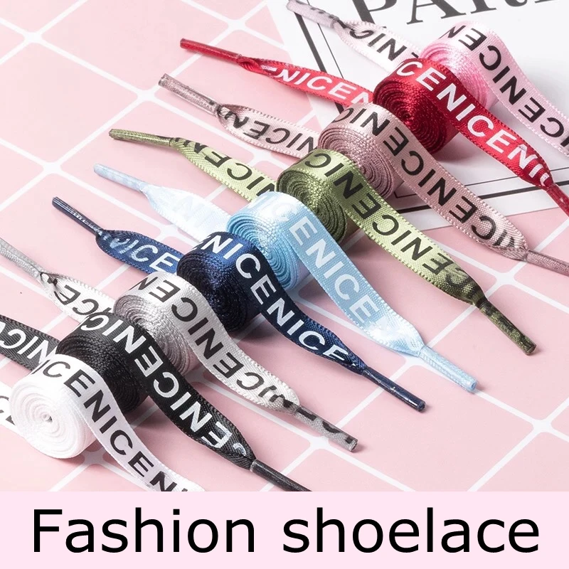 1 Pair Shoelaces Letter Print Flat Shoelaces 1CM Width Satin Silk Ribbon Sneakers Shoes lace Casuals Canvas Shoelace Strings