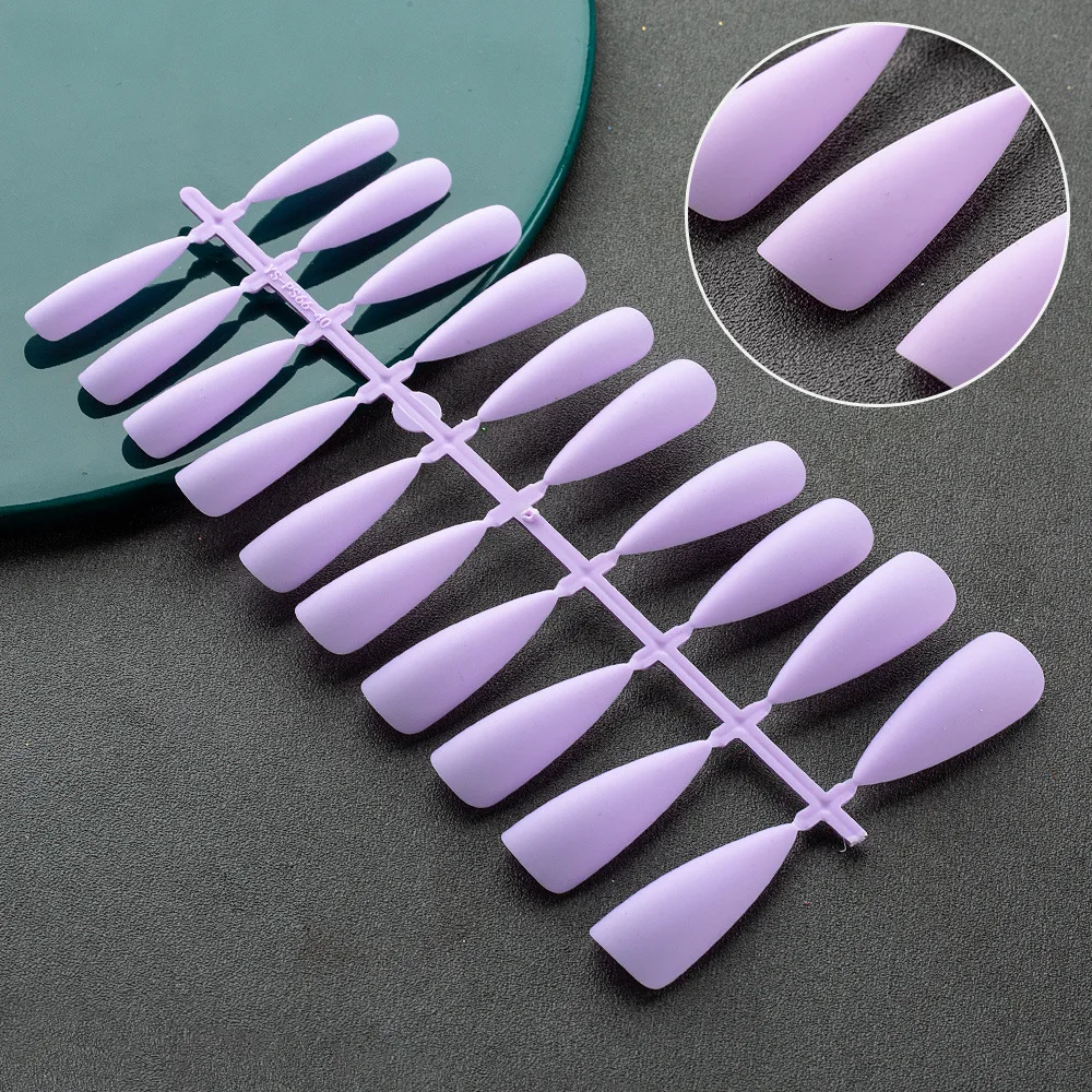 Color: army green - Matte False Nails 24PCS Head Frosted Press Glue on Fake Nail Tips Ballet Detachable Full Cover Artificial Fingernails