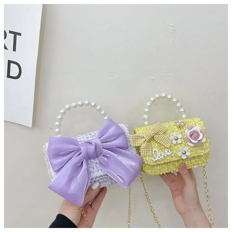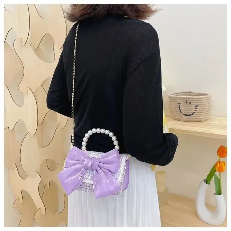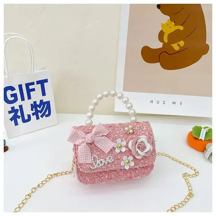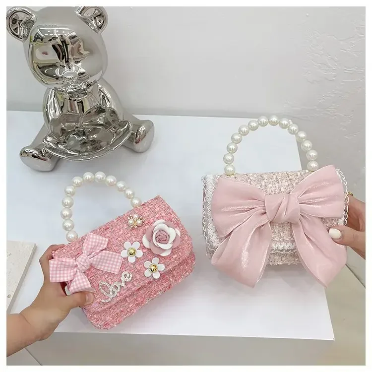 New Children's Fashion Little Fragrant Wind Elsa Princess Bag Little Girl Pearl Handheld Crossbody Bag