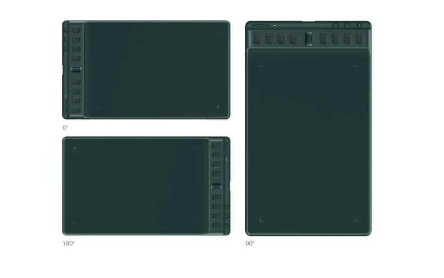 Available for Left-handed Artists As Well. The Type-C charging port sits at the center of the left side of the pen tablet. As for overall design, the press keys and Scroller are placed symmetrically. If you are left-handed, you can adjust the tablet to 180° in the driver. If you often use a vertical monitor to deal with your work, then you can directly rotate the tablet to 90° .
