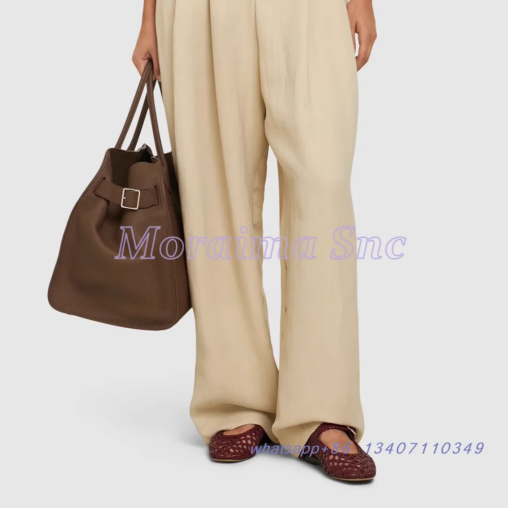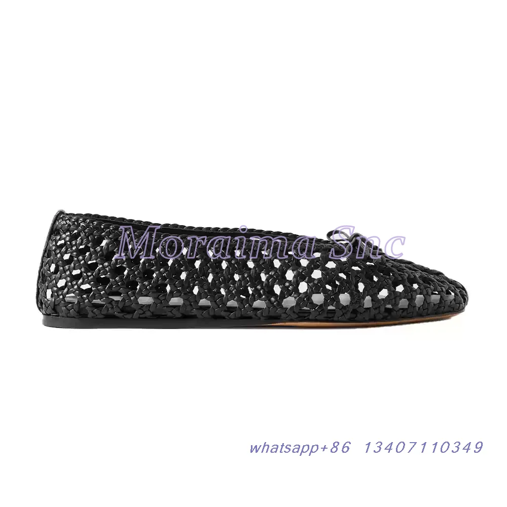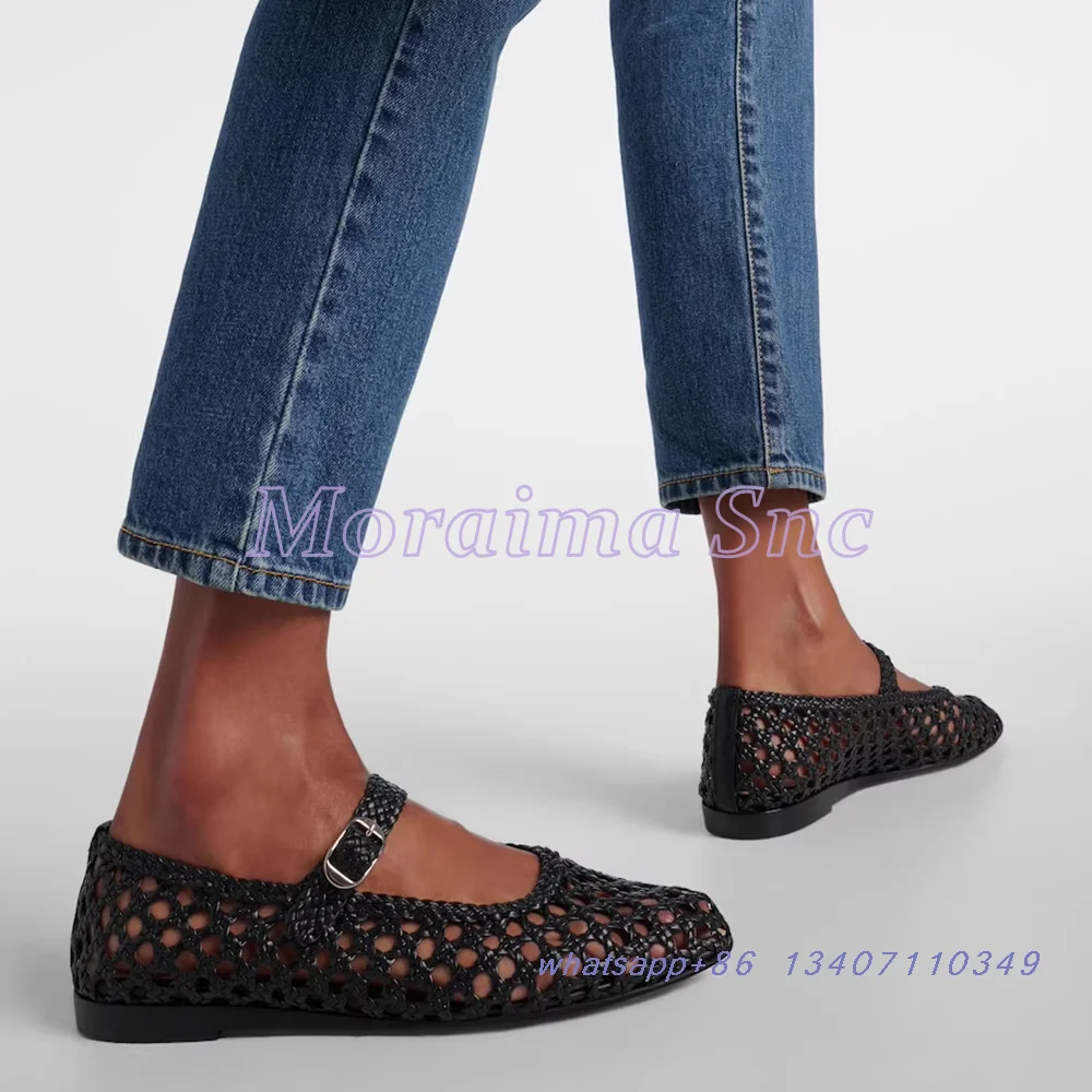 Color: army green, Shoe Size: 39 - Hollow Woven Leather Ballet Shoes Flat With Round Toe Ankle Buckle Strap Fashion Shallow Women Shoes Mary Janes Summer New 2025