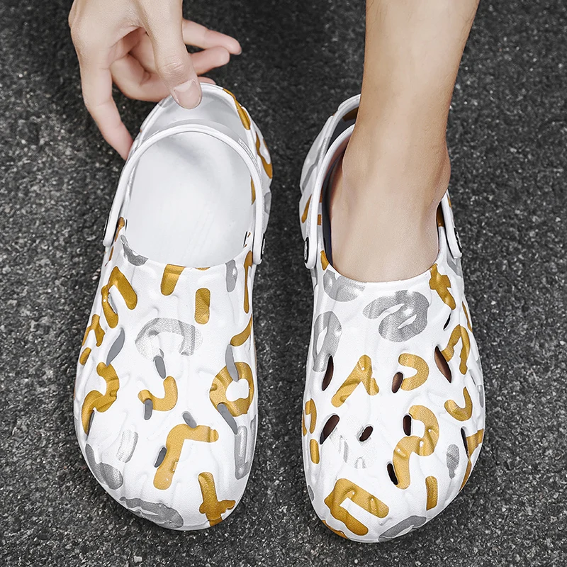 Color: army green, Shoe Size: 41 - Men Summer Slippers Thick Sole Mens Clogs Sandals Hollow Breathable Flip Flops Sandals Shoes Fashion Beach Slippers