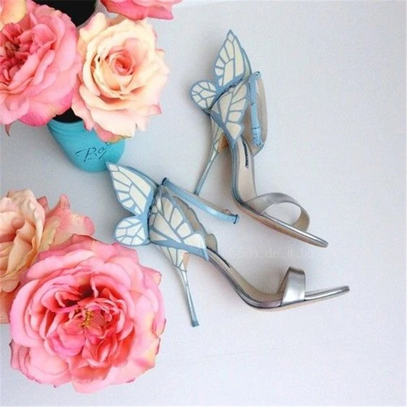 Color: Army Green, Shoe Size: 8.5 - Women Summer Sandals Fashion Embroidered Satin Butterfly High Heeled Footwear Adjustable Ankle Strap Shoes Women high heels