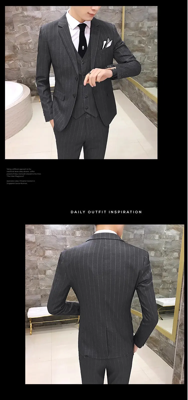 Color: army green, Size: 4XL - Gray Men Classic Striped/Checked Suits, Business Office 3 Piece, Asian Size Slim Fit Men Dress Jacket & Pants with Vest, S-4XL