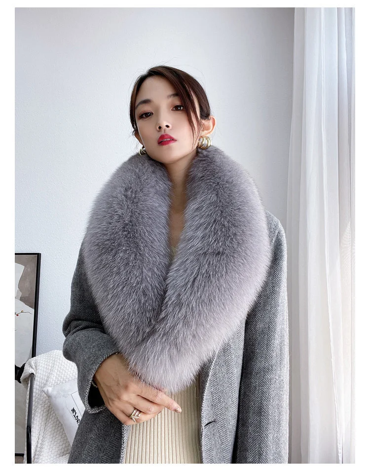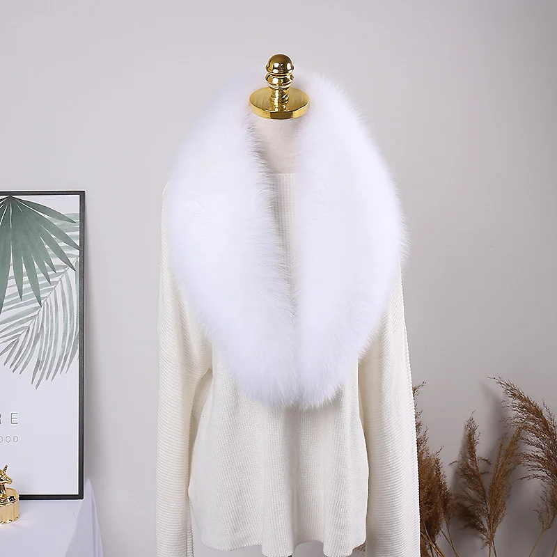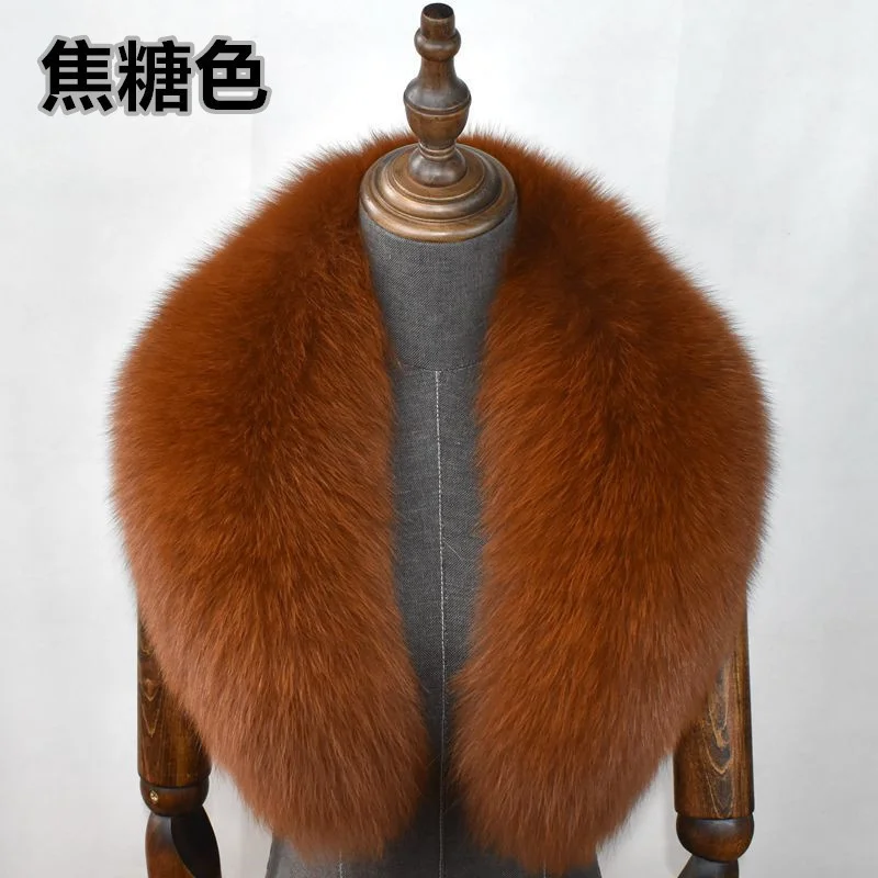 Color: army green, Size: L - 100% Natural Real Fox Fur Collar For Women Men Coat Jacket Fur Scarf Winter Extra Large Size Neck Warmer Fur Scarf Shawls Wraps