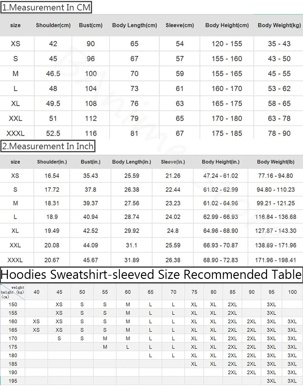 Note:Size mearsured by ourselves, sometimes has some errors, but always within 3cm." Please note 1 cm = 0.39 inch,1 inch = 2.54 cm. Please feel free to contact us when finding difficulty in choosing size,we will give you the best option.
