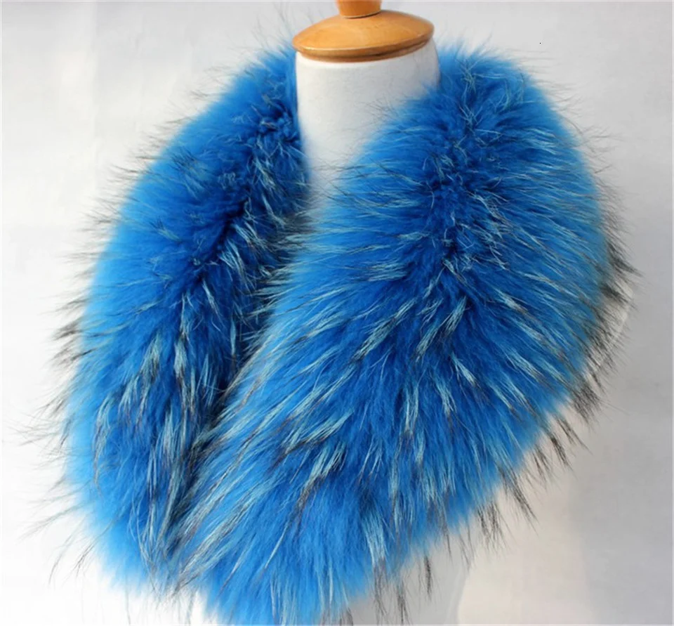 Color: army green, Size: M - Real Raccoon Fur Scarves Woman 100% Pure Natural Raccoon Fur Collar Warm Winter Scarves Red Fox Fur Collar L#1