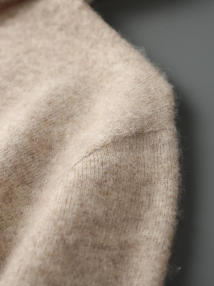Fiber characteristics:The fiber diameter of cashmere is smaller than wool, the texture is more delicate and soft, and the scale structure of cashmere is smaller, making its thermal performance better than wool. Wool fibers are relatively thick, hard in texture, and not as warm as cashmere.