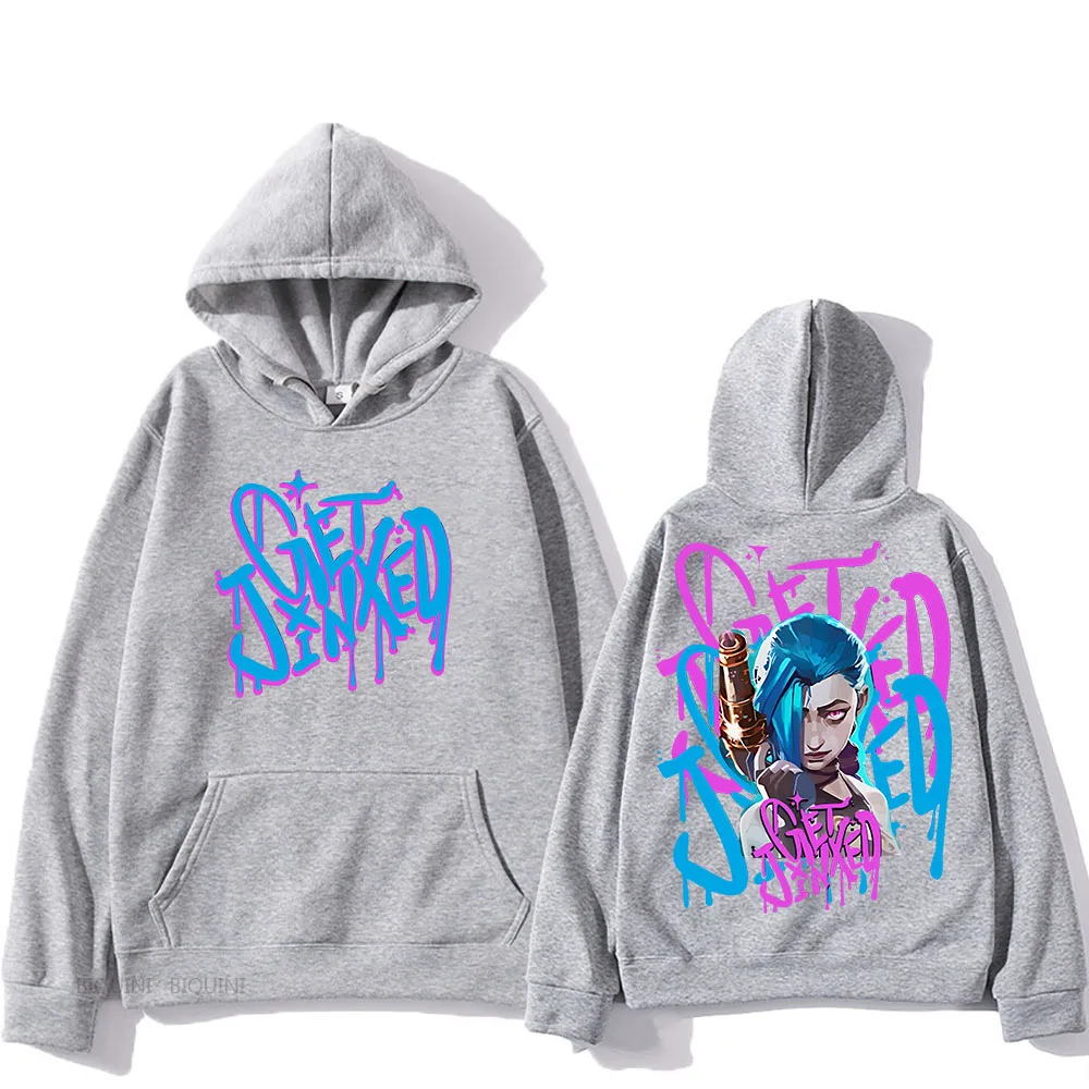 Color: army green, Size: XXXL - Arcane Jinx Cute Hooded Anime Print Harajuku Kawaii Sweatshirt Long-sleeved Cartoon Fleece Clothes Moletom Fashion Pullovers