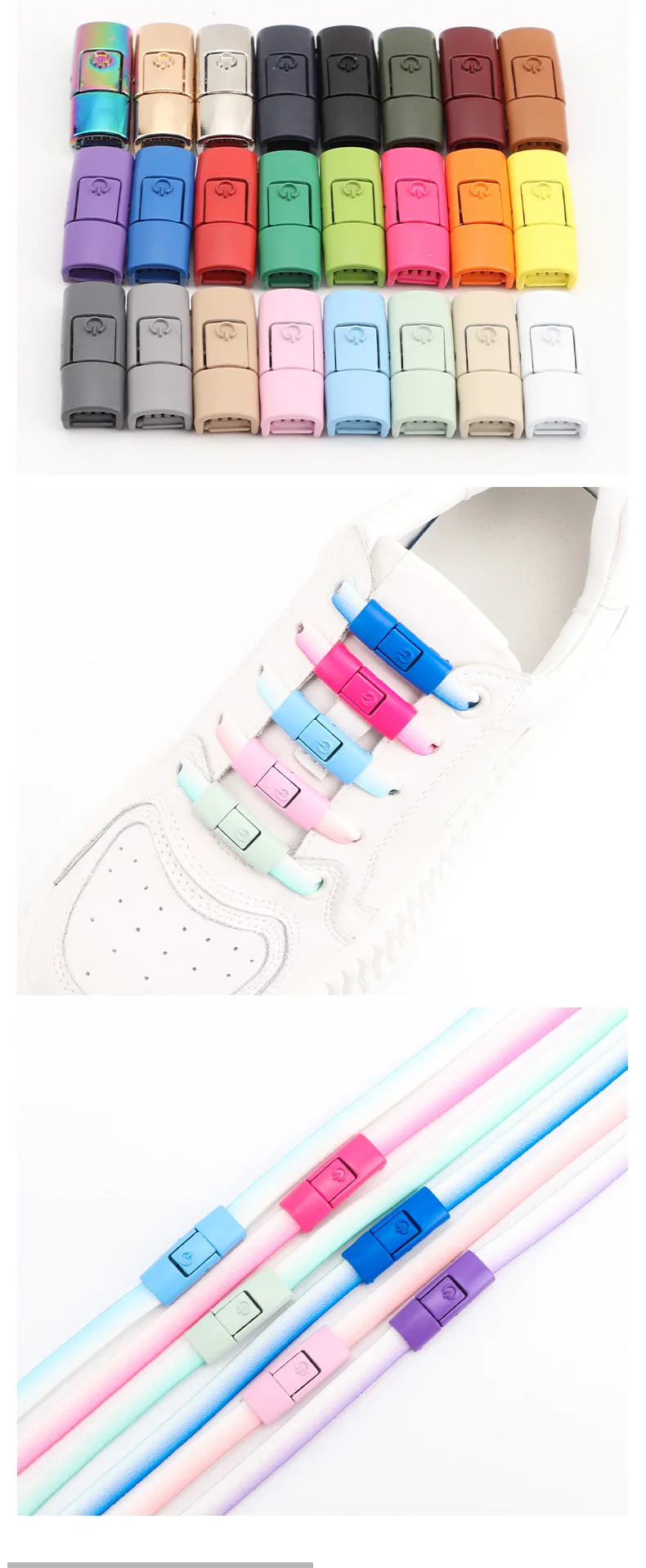 Switches Colorful Metal Buckle No Tie Shoe Laces Press Lock Shoelaces Without Ties Elastic Flat Shoelace Sneaker Kids Adult