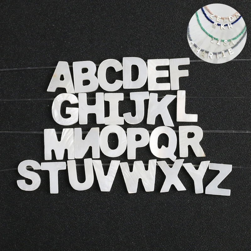 26 Capital Letter Shell Beads Charms Classic A to Z Natural Mother of Pearl Shell Beads For Jewelry Necklace Making DIY Handmade