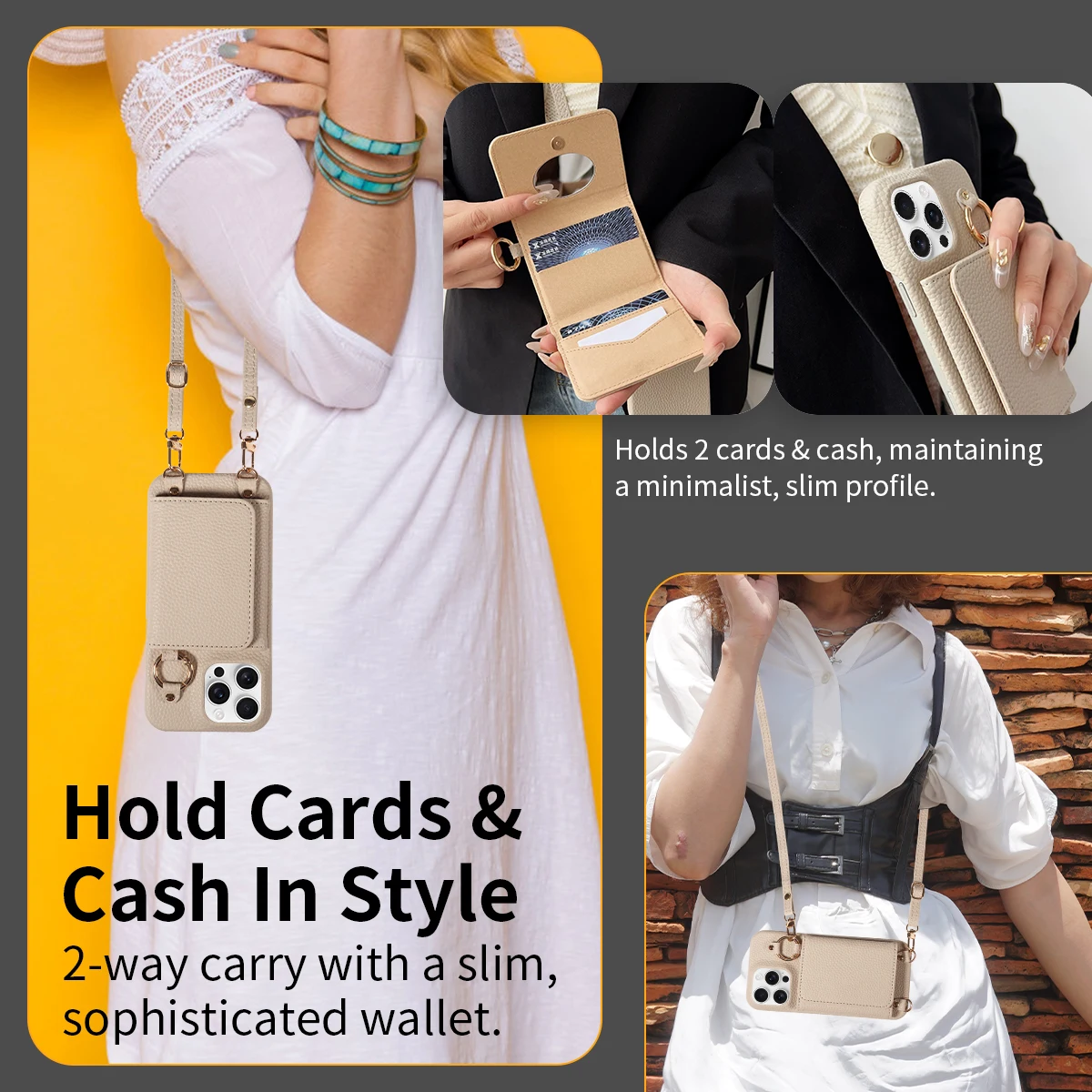 Color: Beige, Bundle: Case & Strap, Material: Artificial Leather, Compatibility by Model: iPhone 13 - For IPhone16 15 Pro Max 14 13 12 Series PU Leather Magsafe Magnetic Wireless Charging Shockproof Crossbody Wallet Phone Case