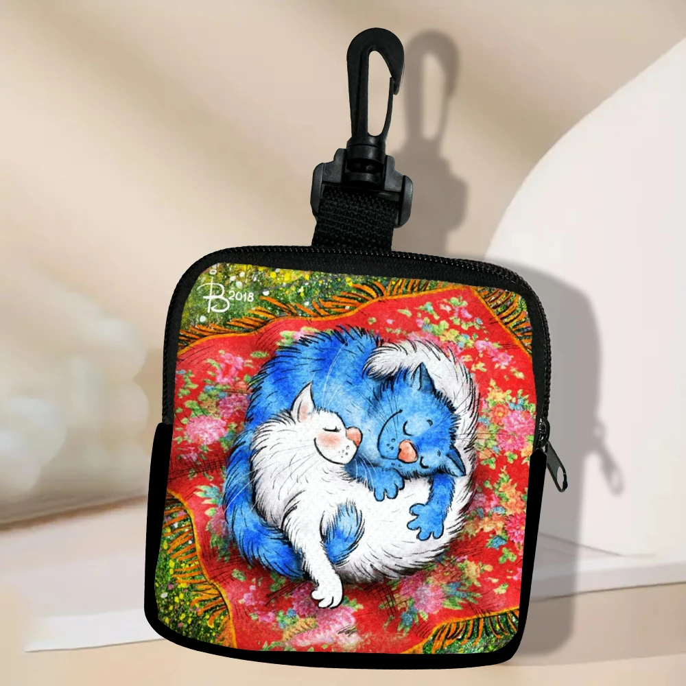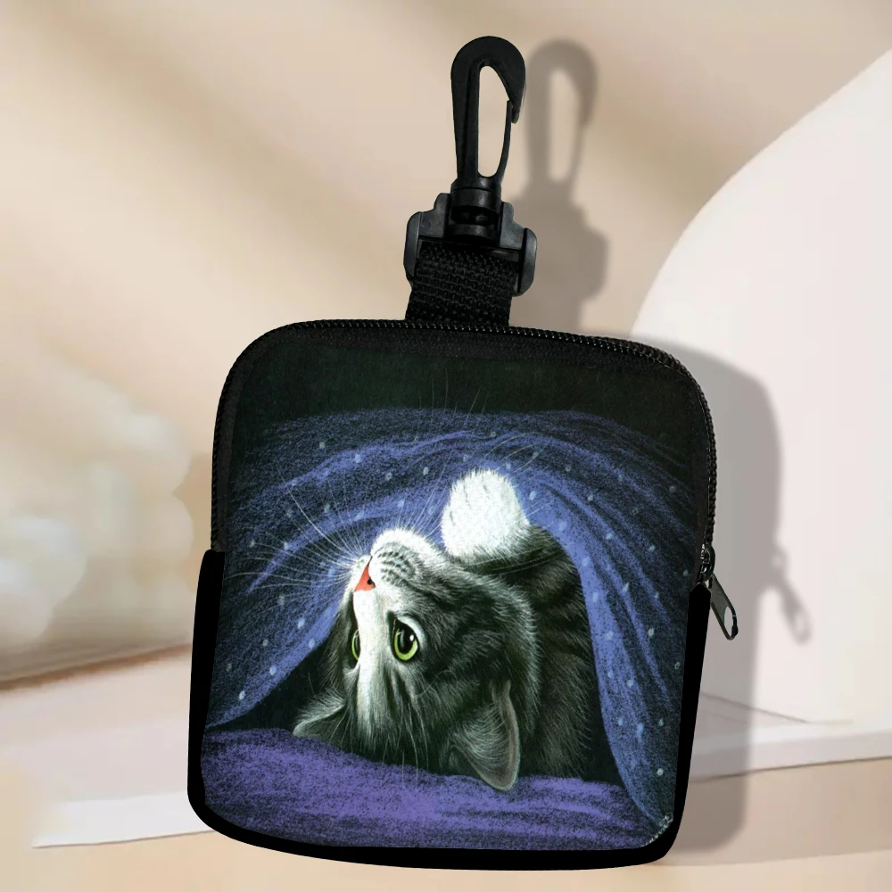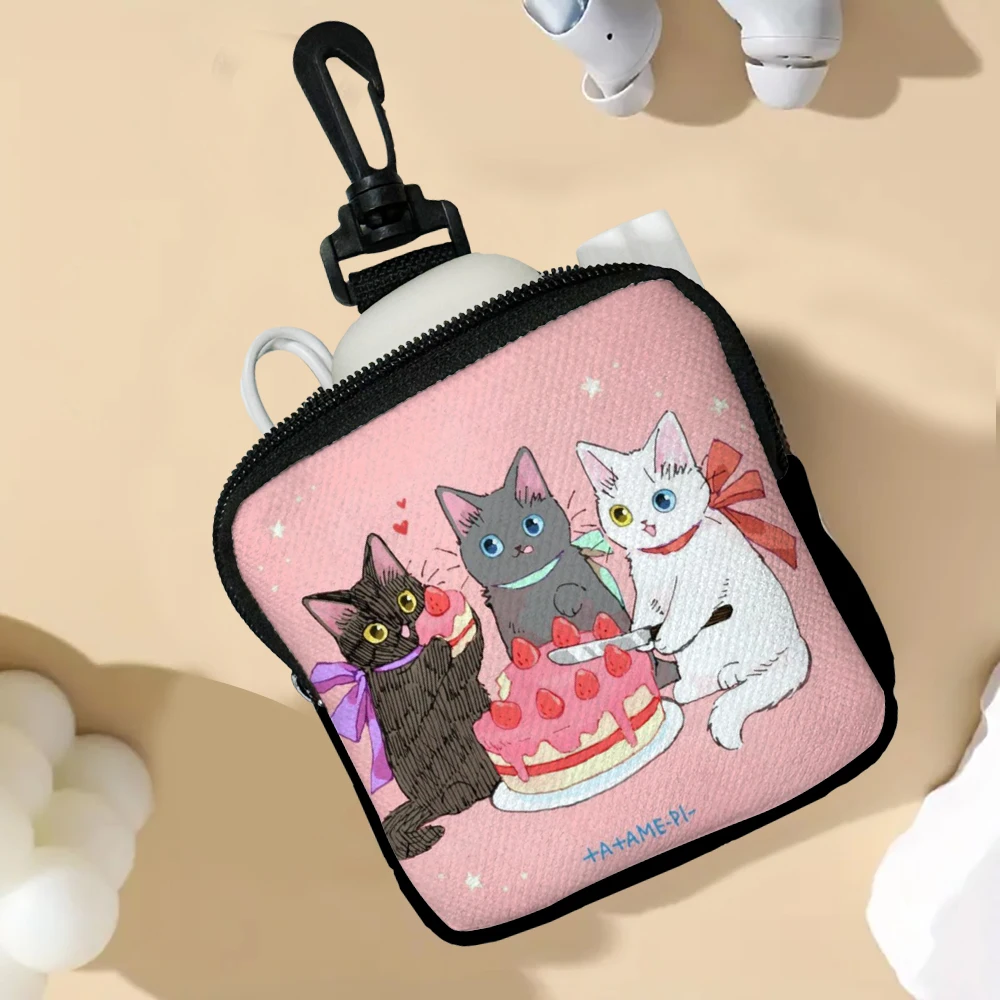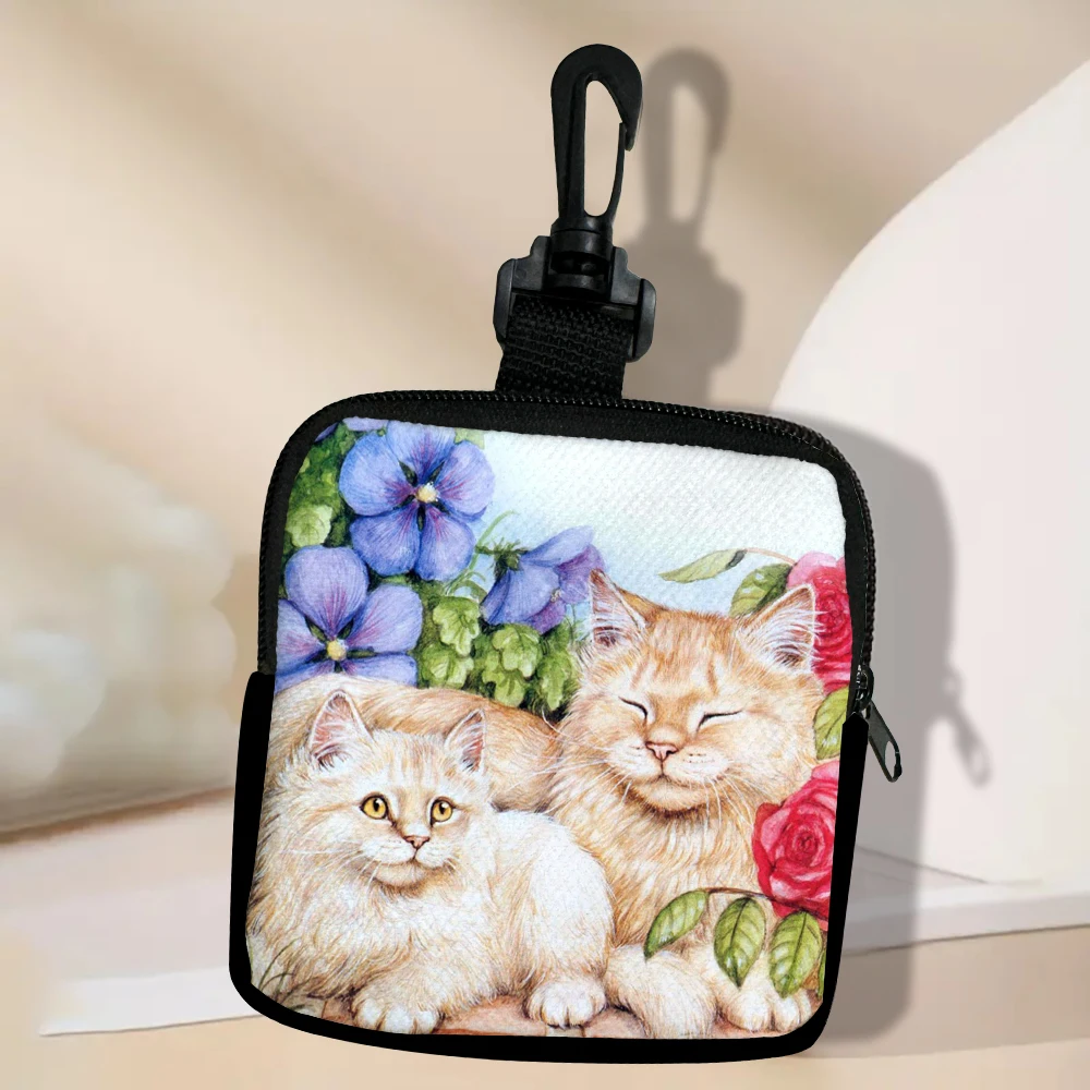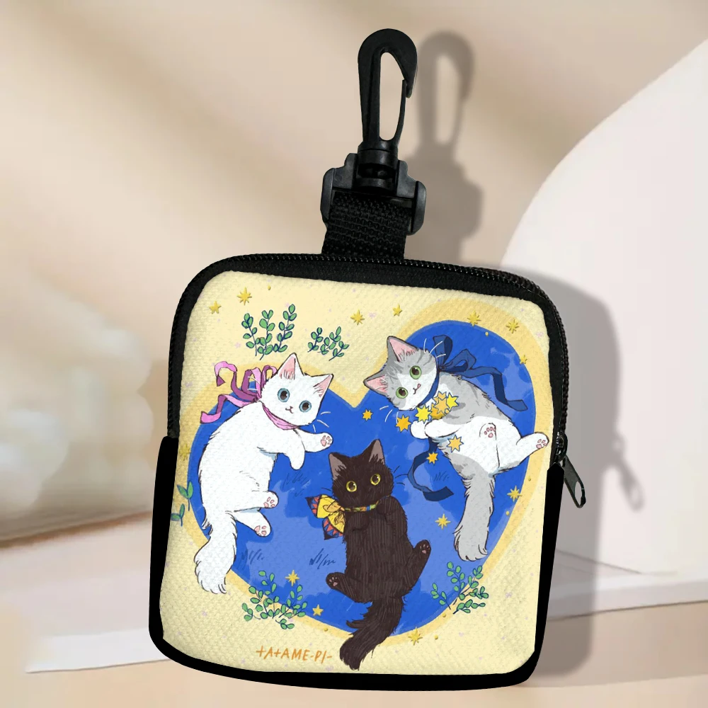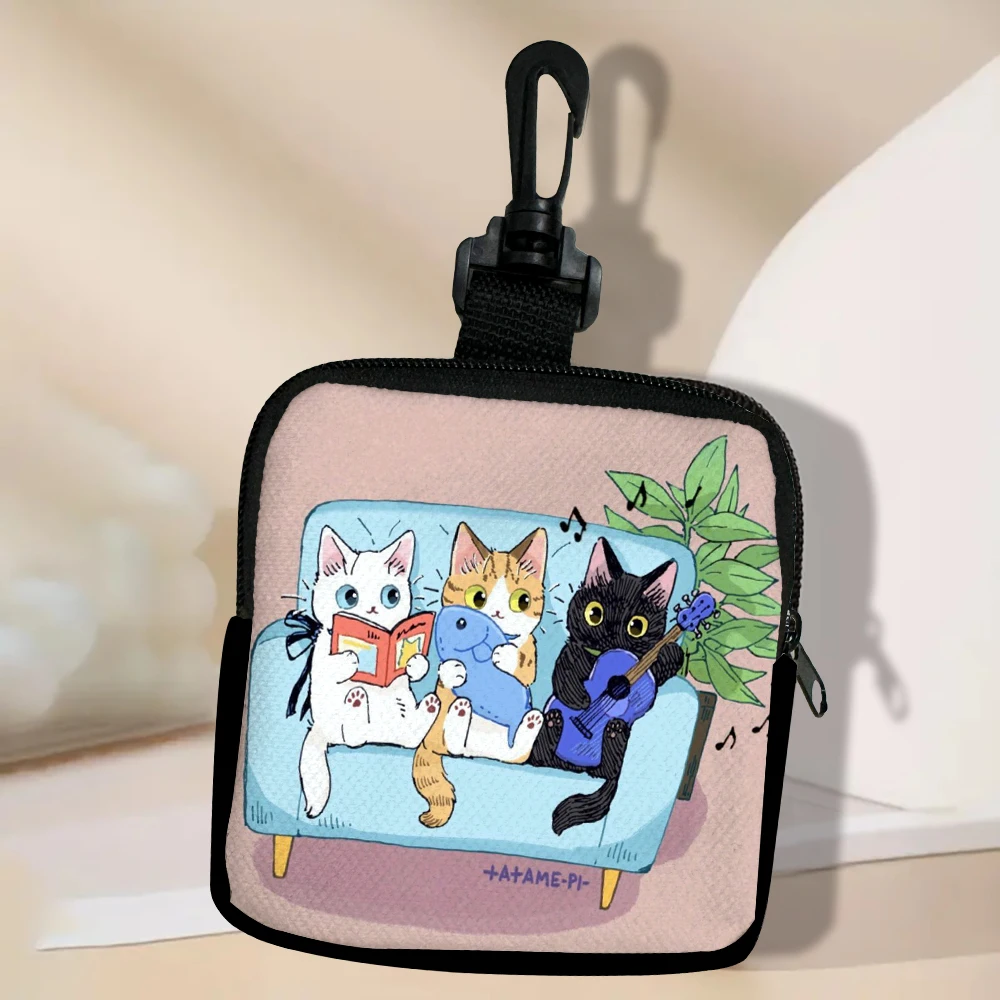 Color: Beige - Cat Mini Coin Purse Simple Zipper Kid Storage Pouch Coin Key Bag Women Men Wallet Mini Purse 7.2