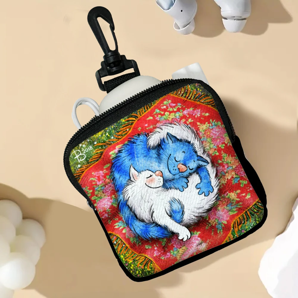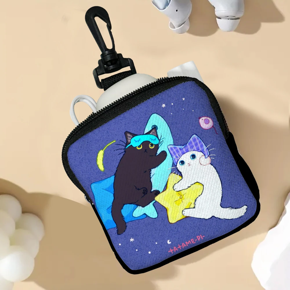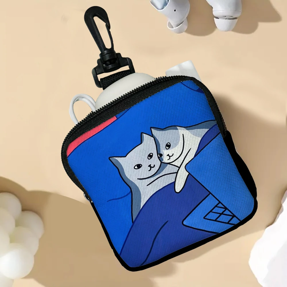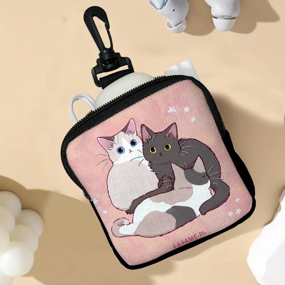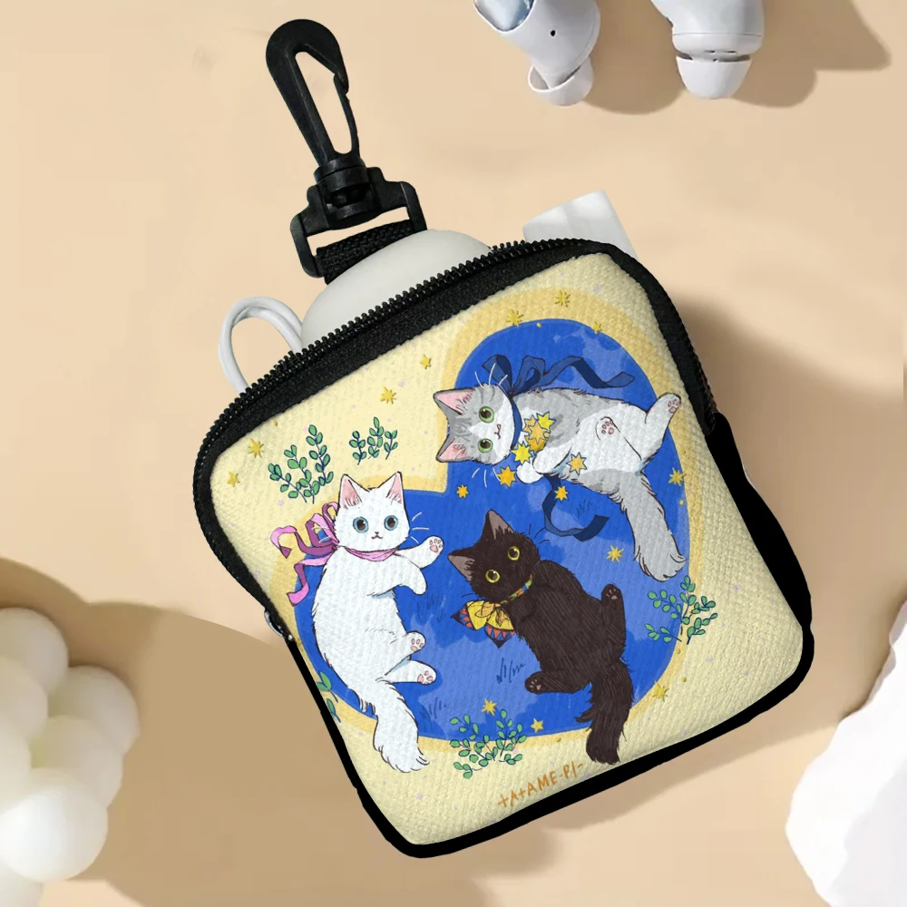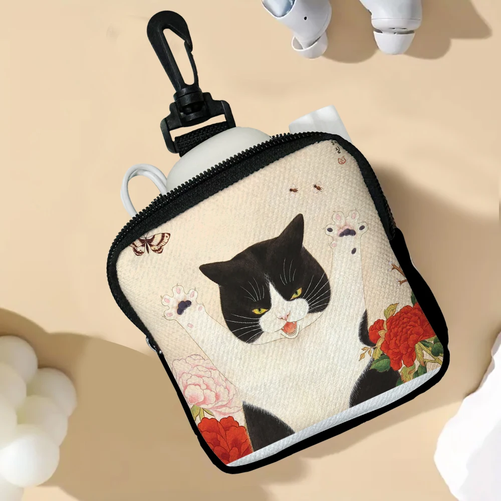 Color: Beige - Cat Mini Coin Purse Simple Zipper Kid Storage Pouch Coin Key Bag Women Men Wallet Mini Purse 7.2