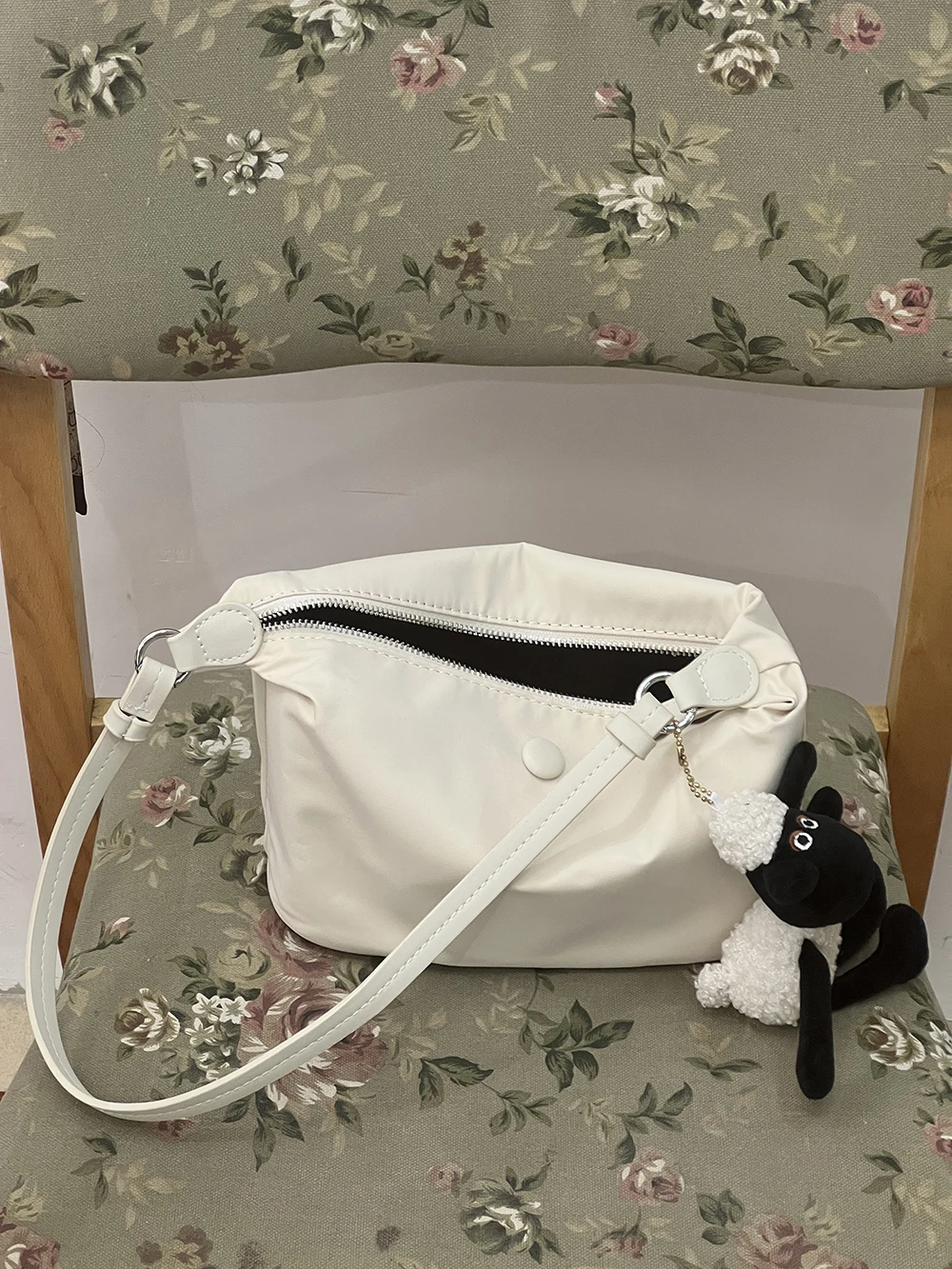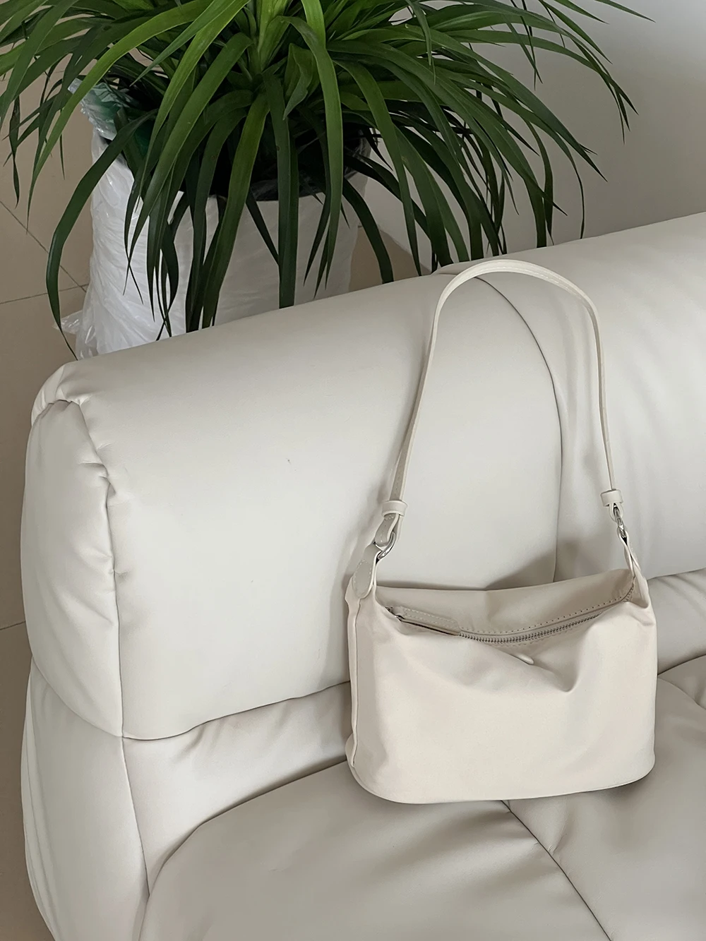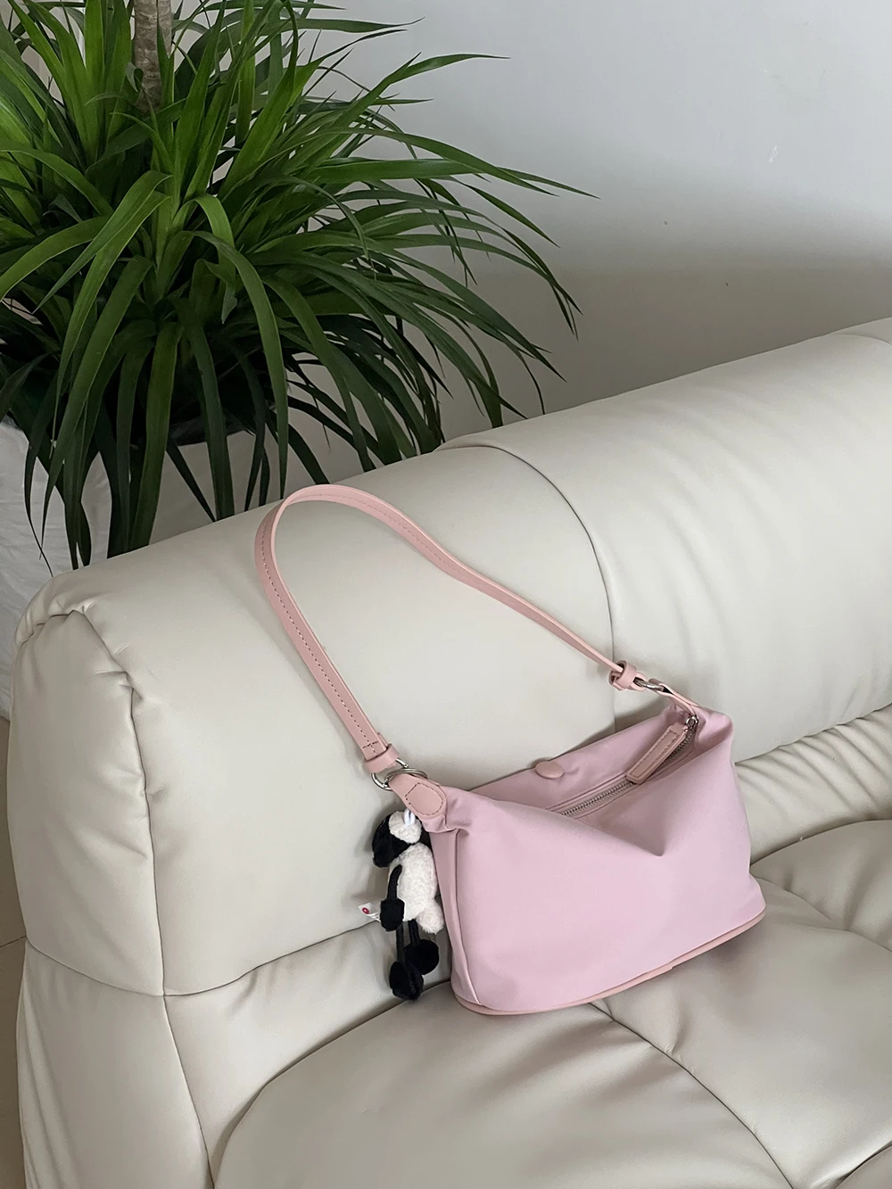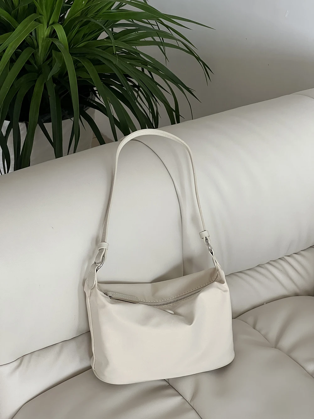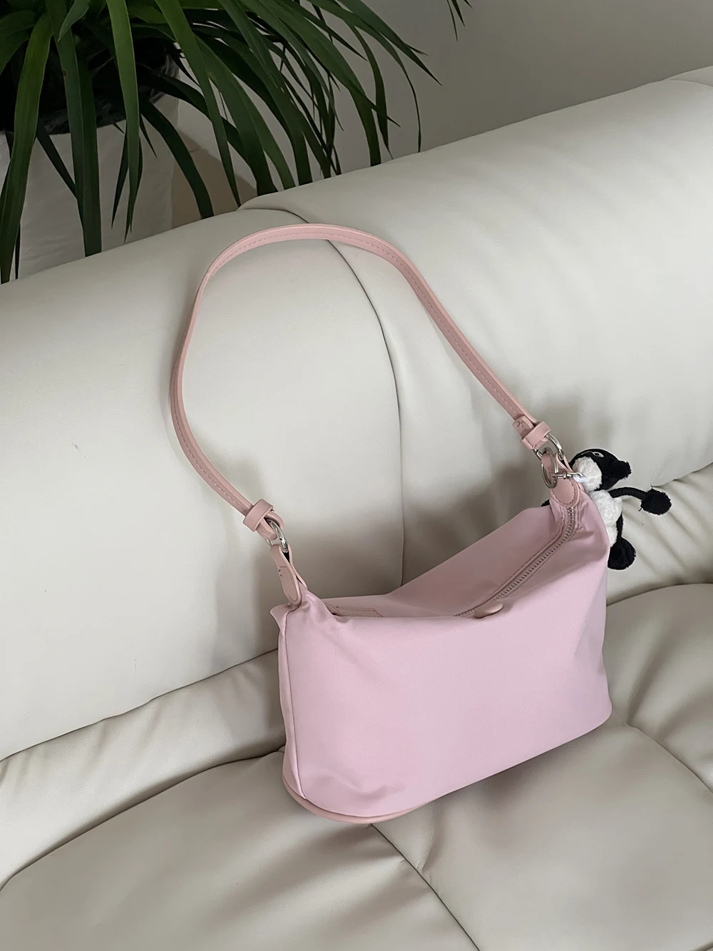 Color: Beige - Homemade Baby Pink Nylon Fabric Underarm Bag Korean New Inner Lightweight Texture Small Bag Full with Shoulder Handbag