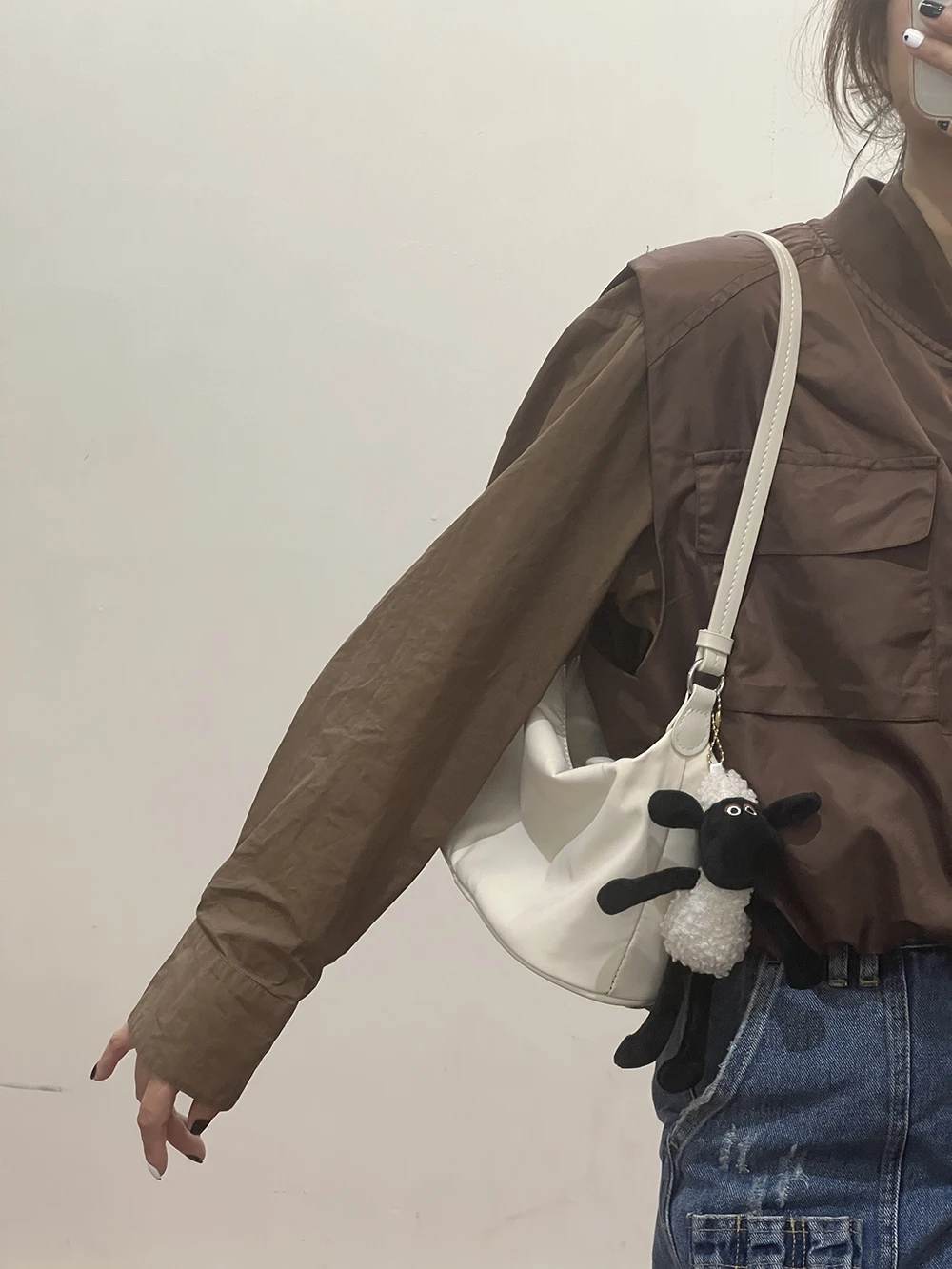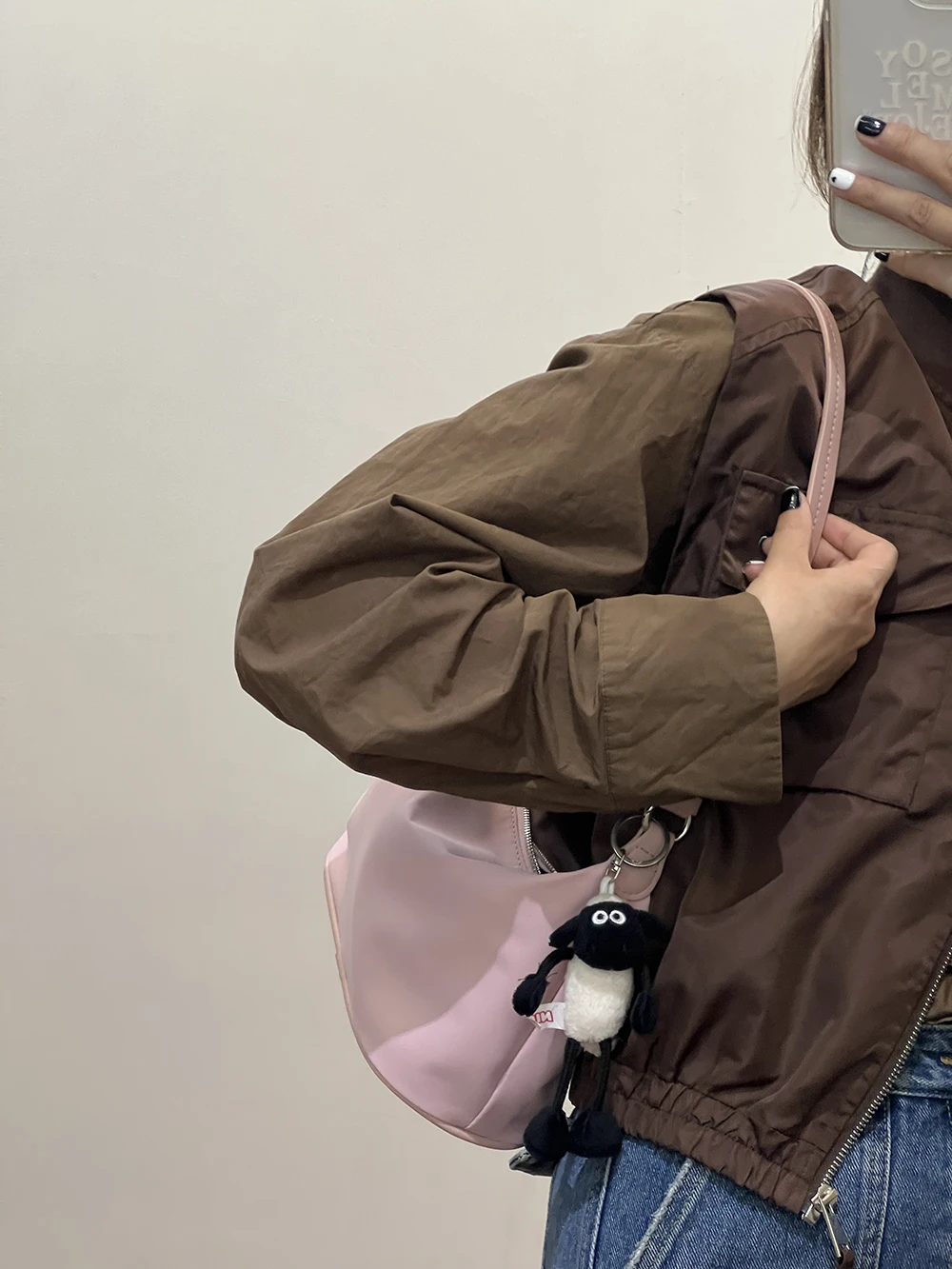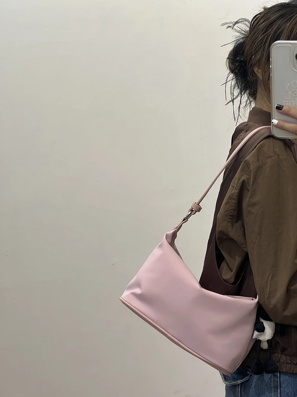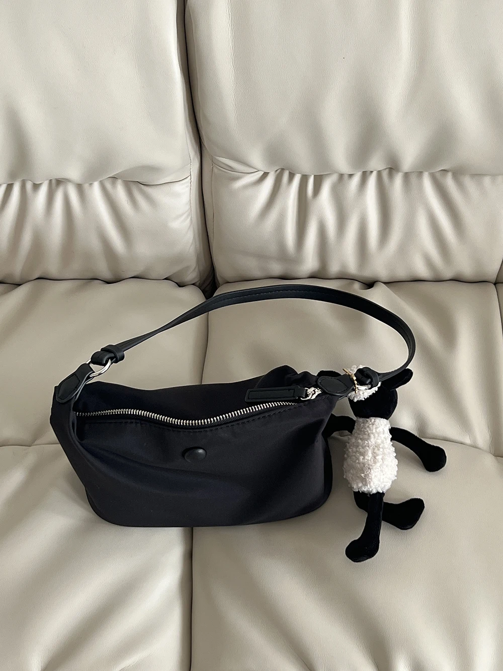 Color: Beige - Homemade Baby Pink Nylon Fabric Underarm Bag Korean New Inner Lightweight Texture Small Bag Full with Shoulder Handbag