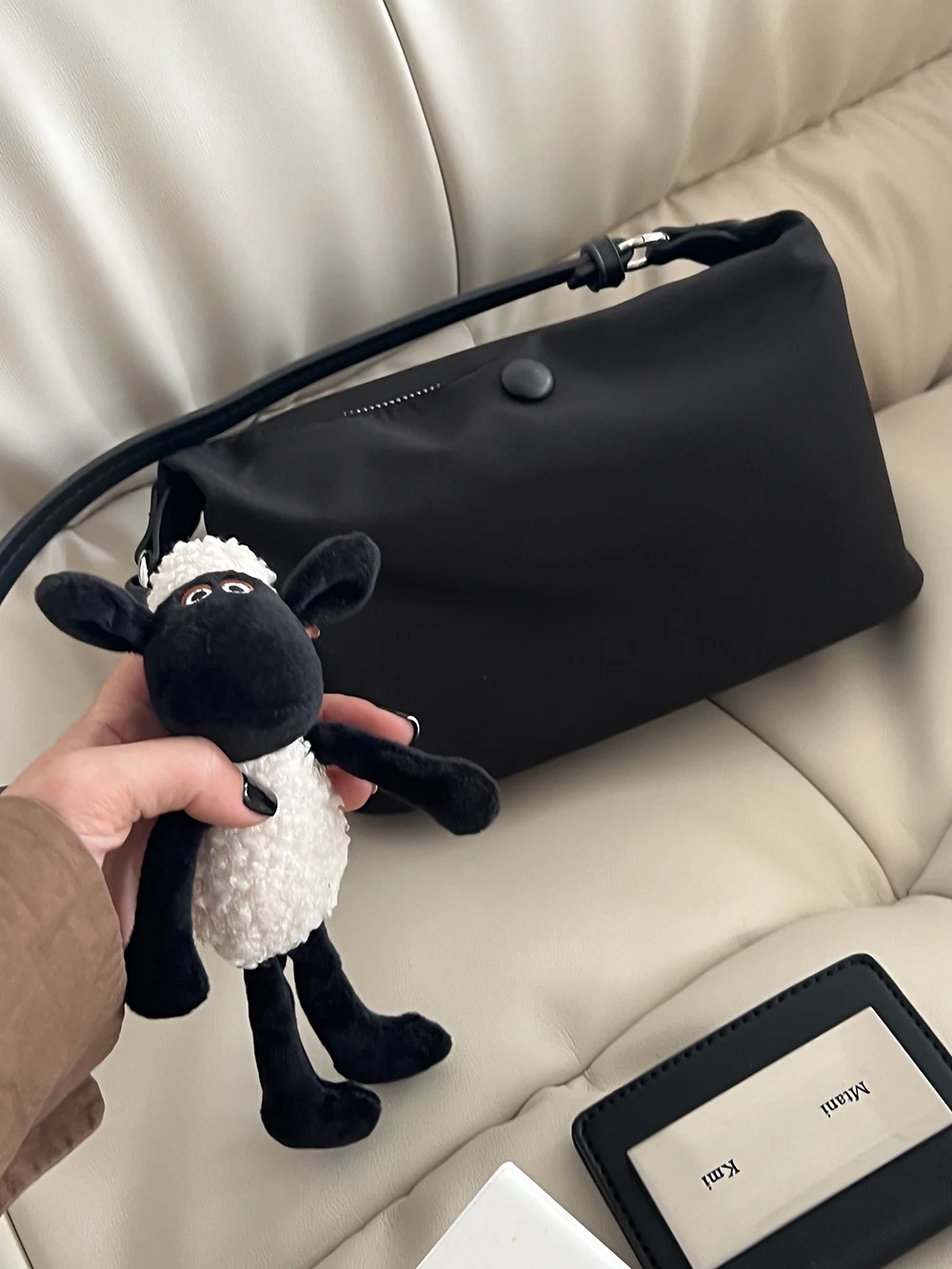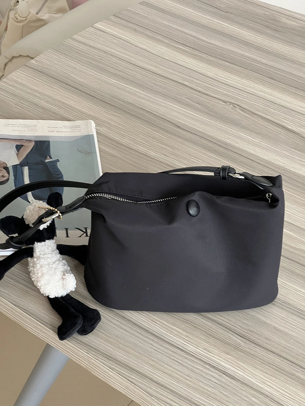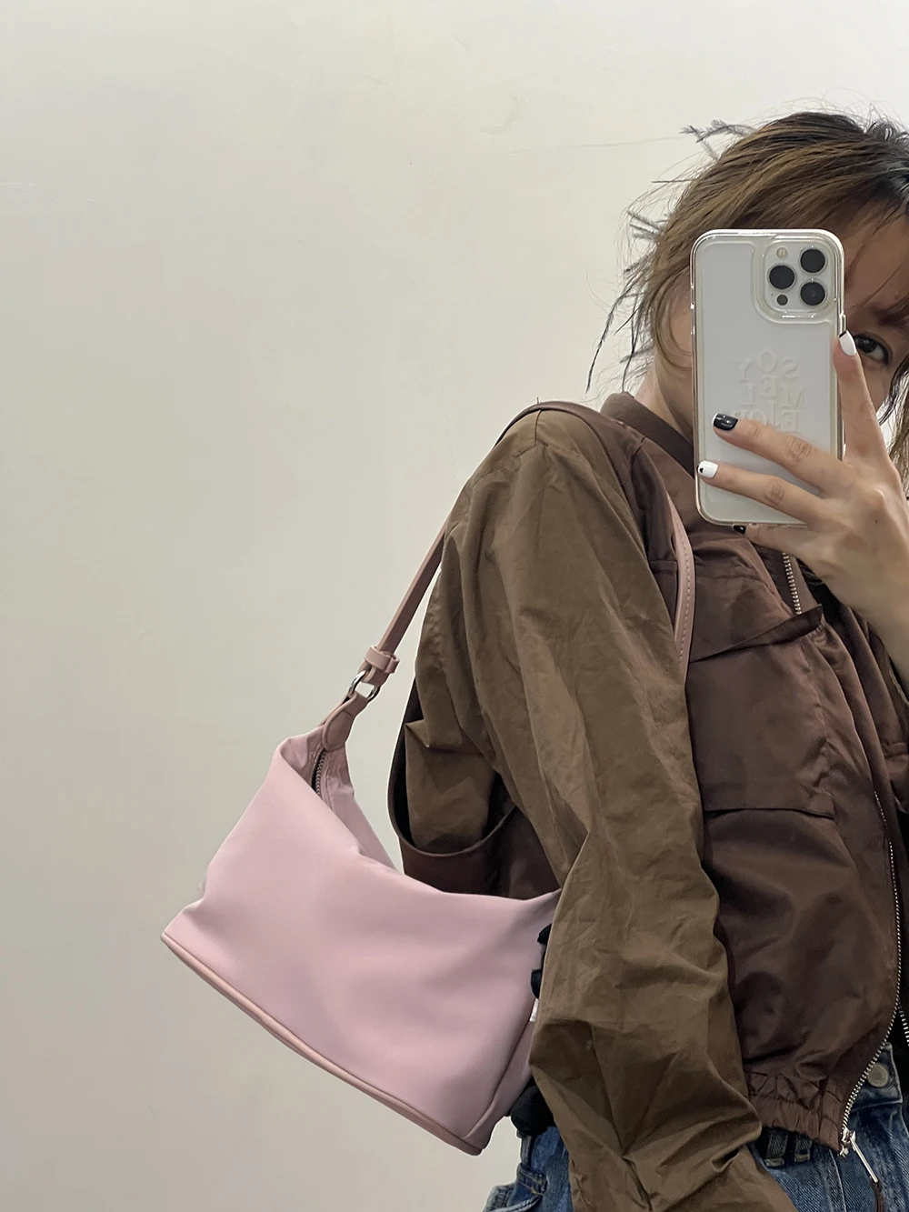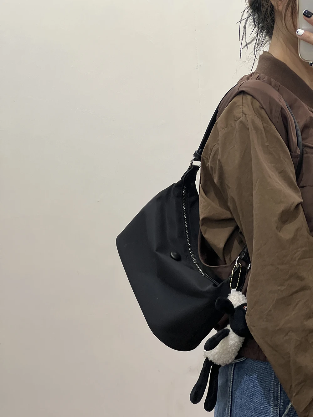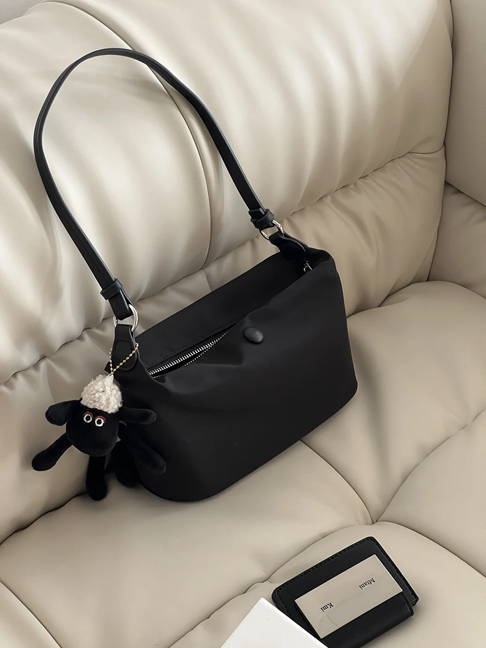 Color: Beige - Homemade Baby Pink Nylon Fabric Underarm Bag Korean New Inner Lightweight Texture Small Bag Full with Shoulder Handbag