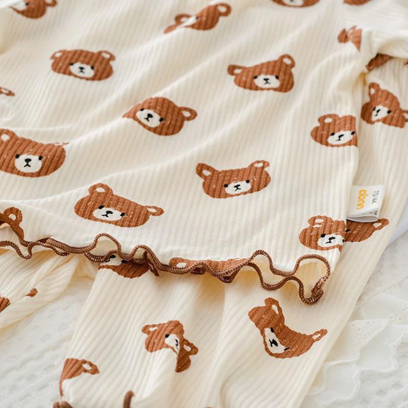 Color: Beige, Kid Size: 10 - Summer Printing Short-Sleeved Loungewear Suit Boys And Girls Pajamas Pants Two-Piece Set 2-6 Years Old Robe