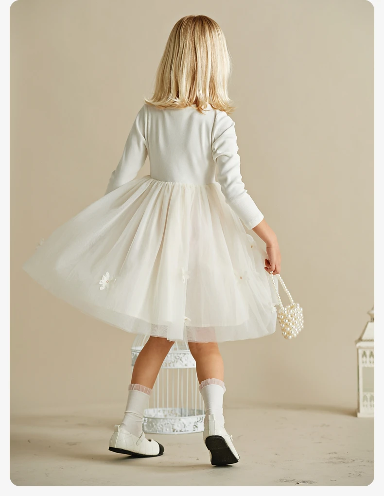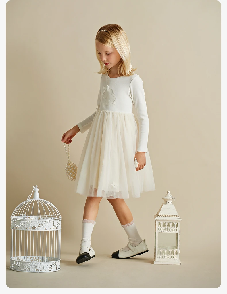 Color: Beige, Kid Size: 13T - Dave Bella Girl's Dress Children's Kids' 2024 New Spring Princess Dress Charm Sweet Gentle Fashion Mesh Party Outdoor DK1248740