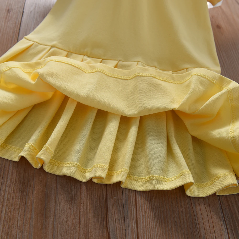 Color: Beige, Kid Size: 2T - Toddler Girls' Dress Ages 2-6 Yellow Collared Summer Cotton Clothes for Children Cute Casual Outfit