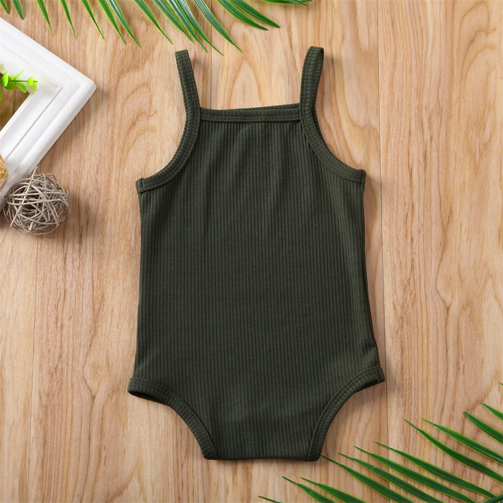 Color: Beige, Kid Size: 3M - 2020 Infant Baby Square Collar Bodysuits Newborn Baby Boy Girl Sling Romper Bodysuit Jumpsuit Outfit Clothes Set
