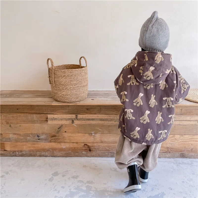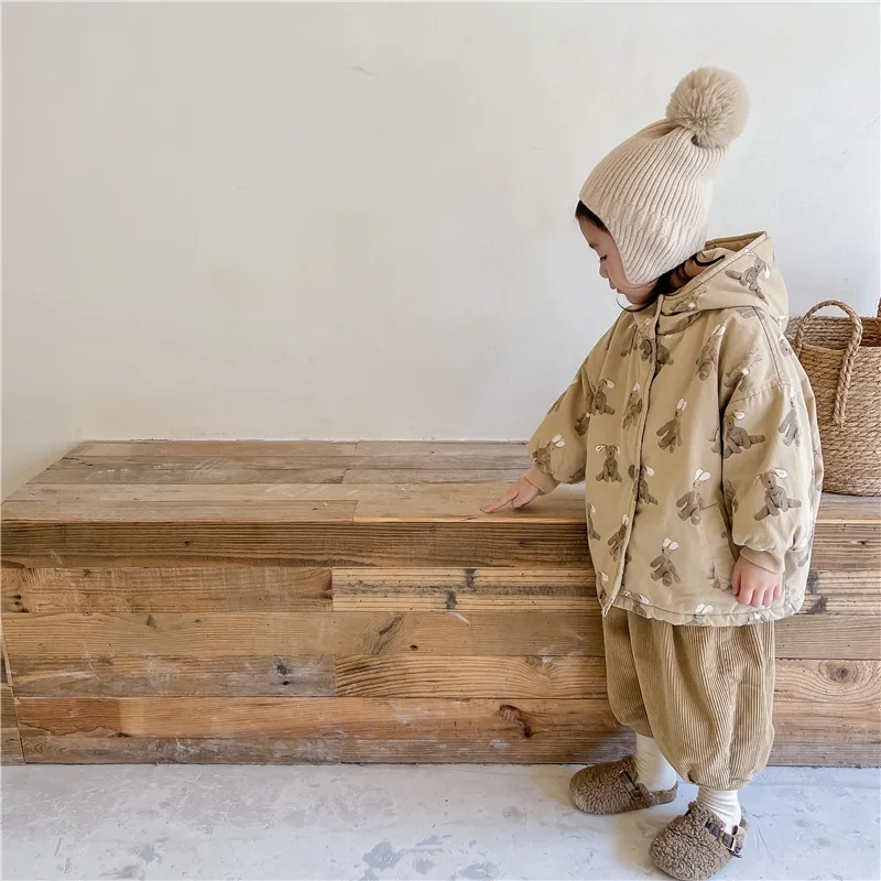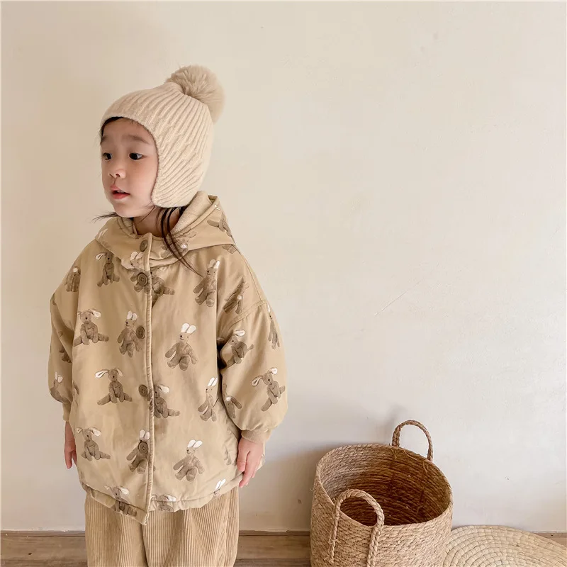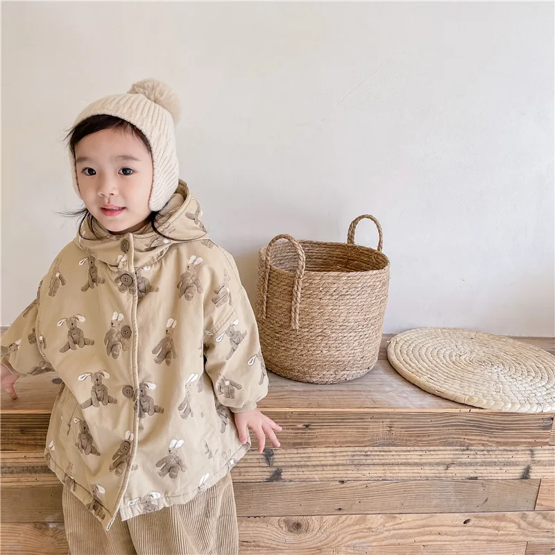 Color: Beige, Kid Size: 3T - Girls Coat 2025 Autumn and Winter New Children's Clothing Korean Wind Girl Baby Cotton Printed Down Jacket Casual Simple Daily