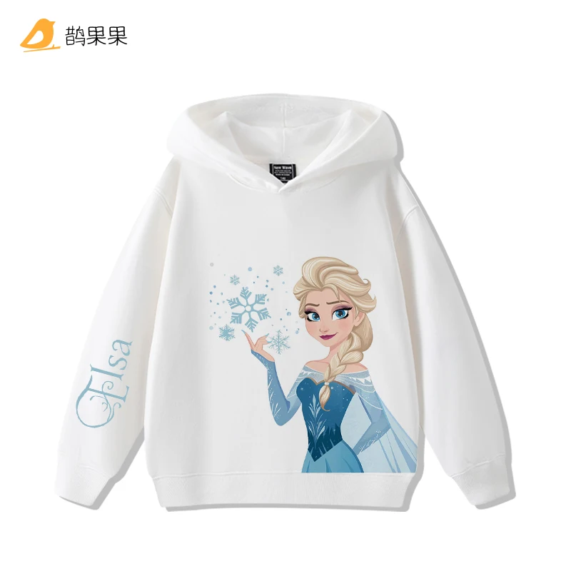 Color: Beige, Kid Size: 3T - Queen Elsa Surrounding Girls Autumn and Winter Hooded Sweatshirt Children Girl Children's Tops Cute Long-sleeved Coat