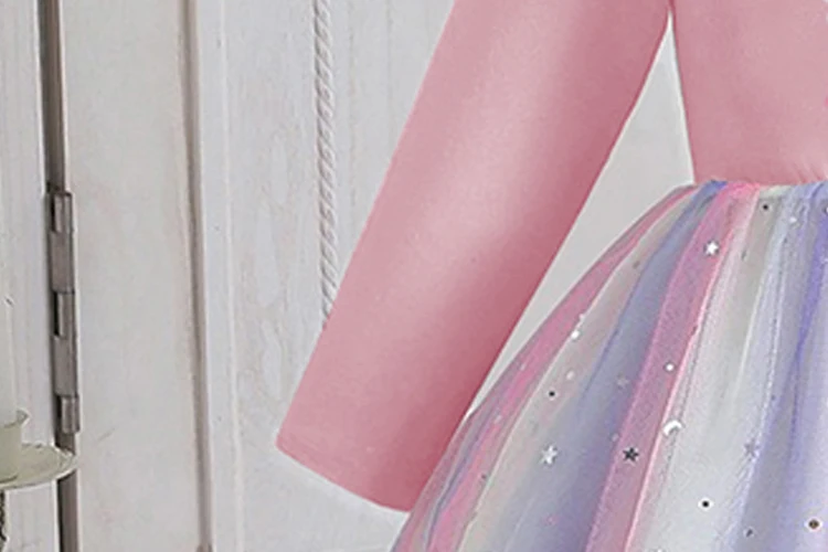 Color: Beige, Kid Size: 3T - Stitch Princess Dress Autumn New Disney Baby Girls Dress Spring Autumn Long-sleeved For Children Kids Clothes Birthday Party