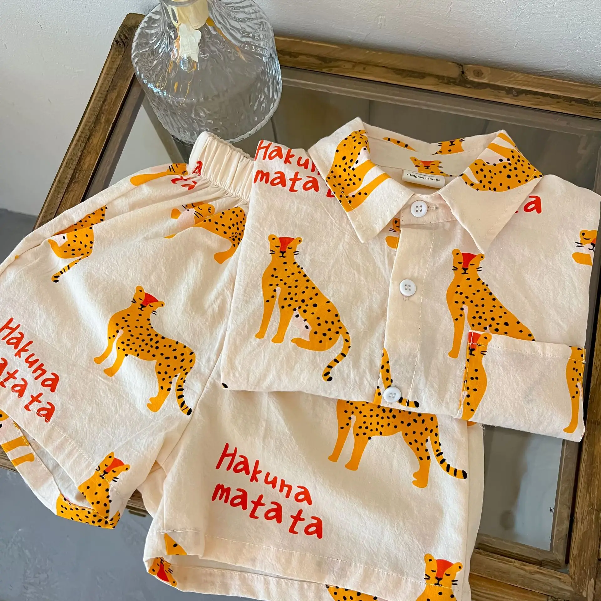 Color: Beige, Kid Size: 5 - 1-5 Years Old Children's Clothing Boys Cartoon Summer Short Sleeve Suit Girls Casual T-shirt Suit