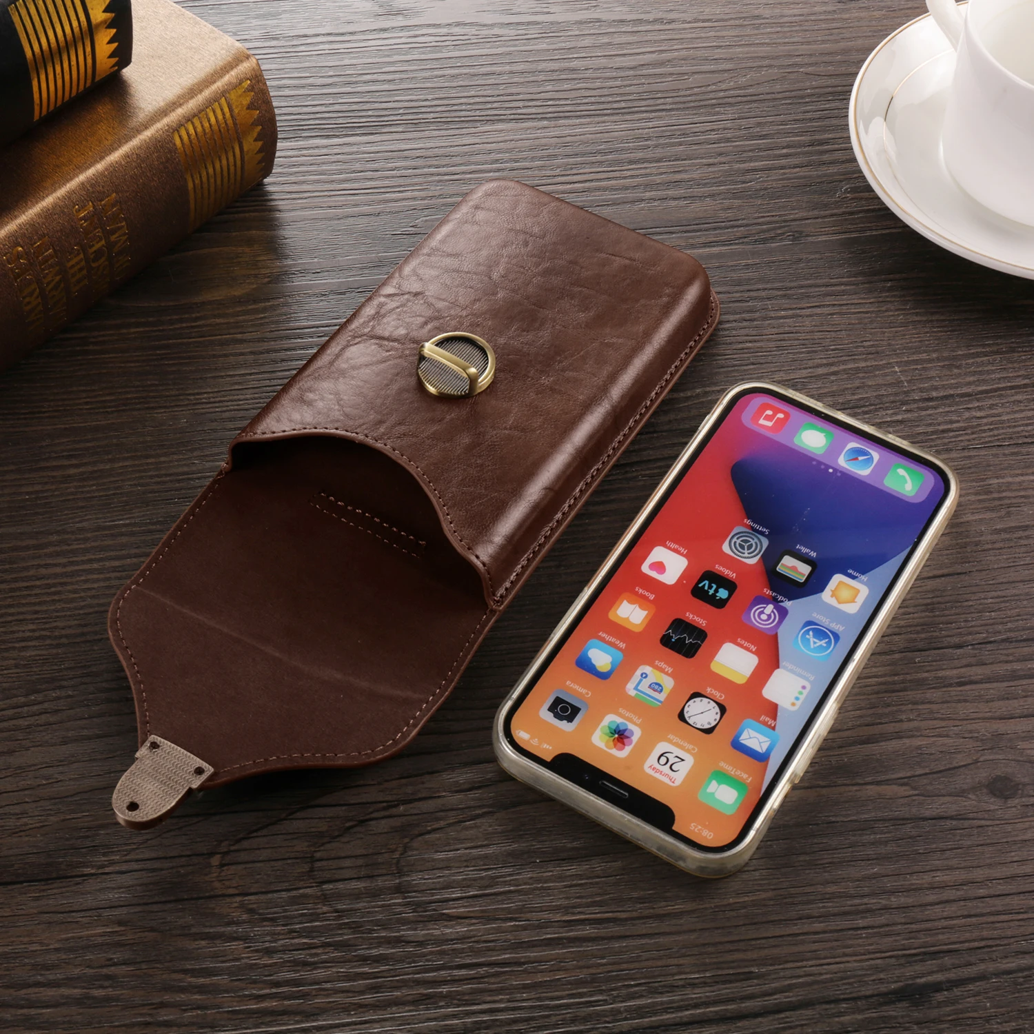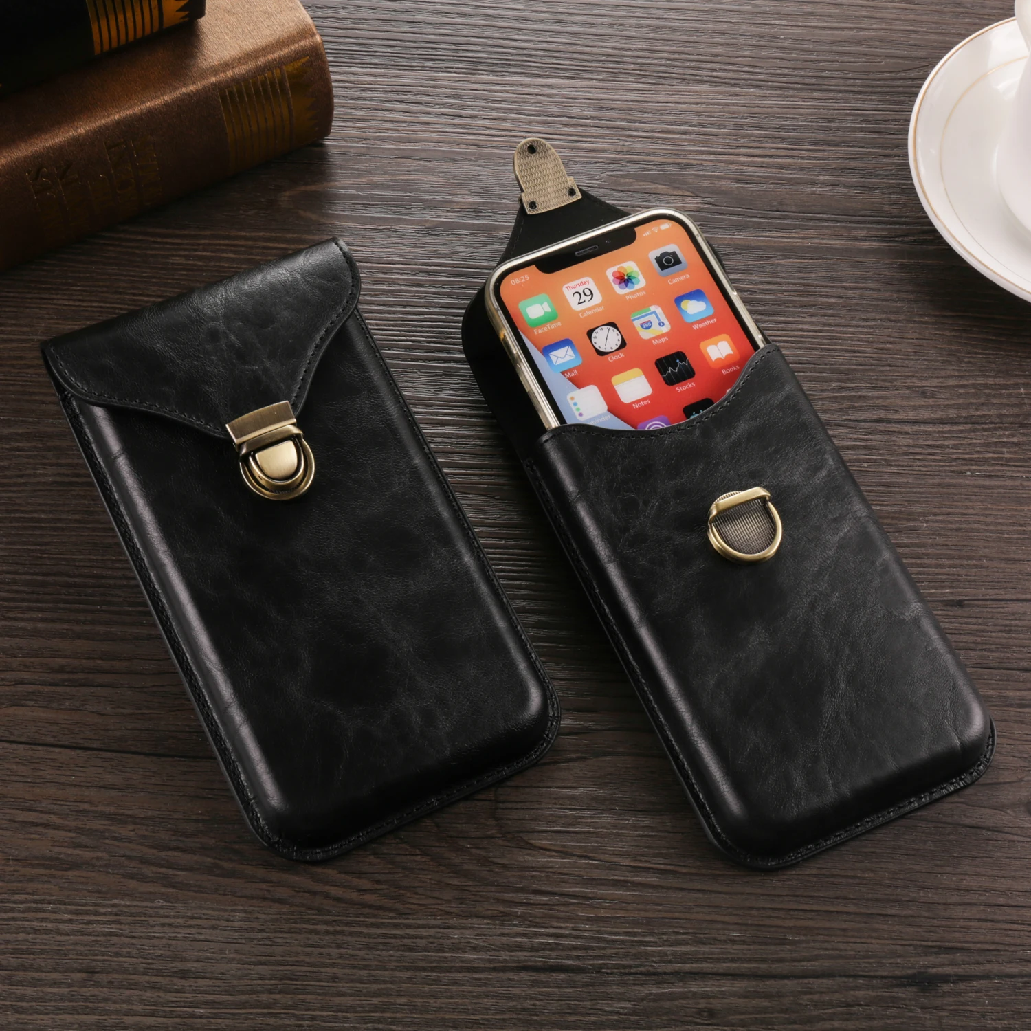 Retro Metal Lock Buckle Leather Mobile Phone Belt Clip Case Men's Waist Bag