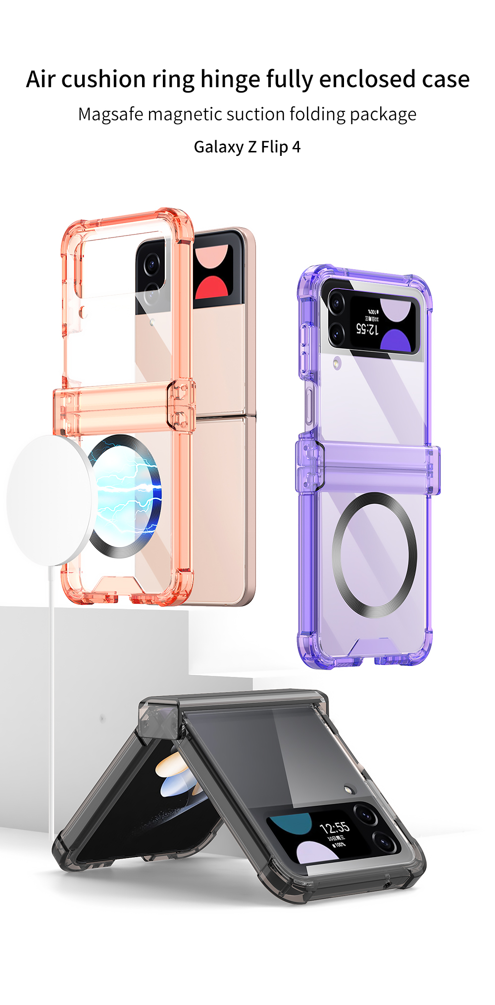 For Samsung Galaxy Z Flip 5 4 3 Magsafe Magnetic Wireless Charging Case Colorful Transparent Folding Hinge Shockproof Hard Cover
