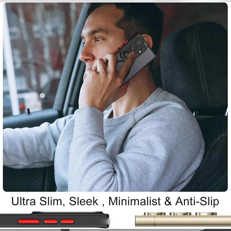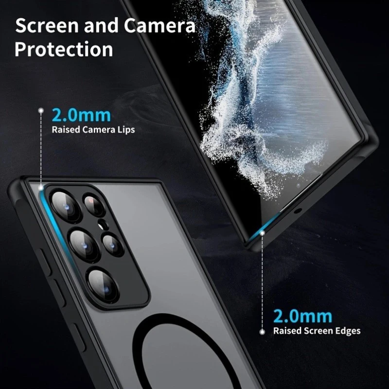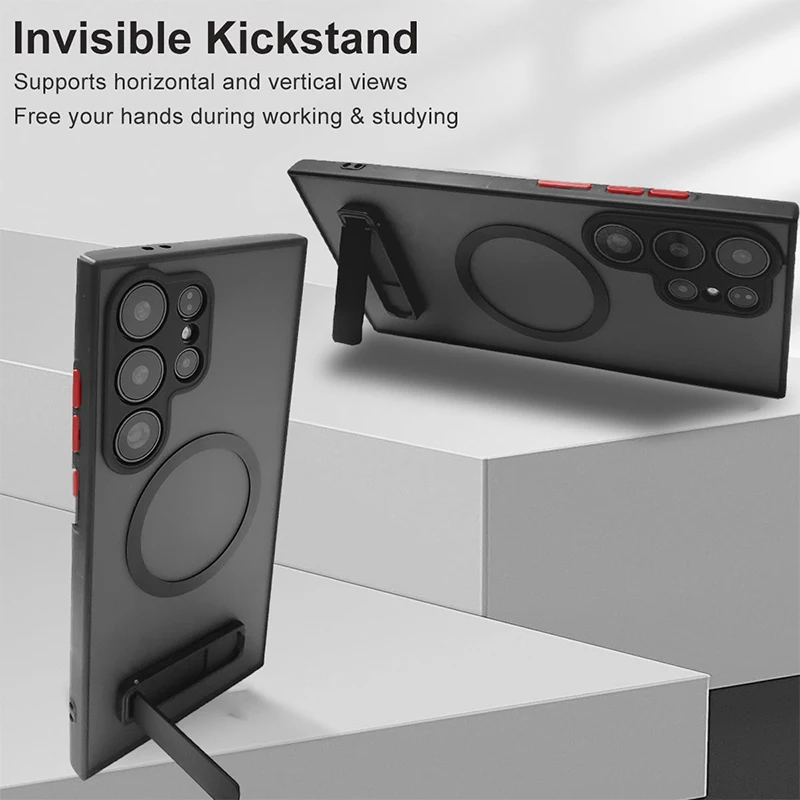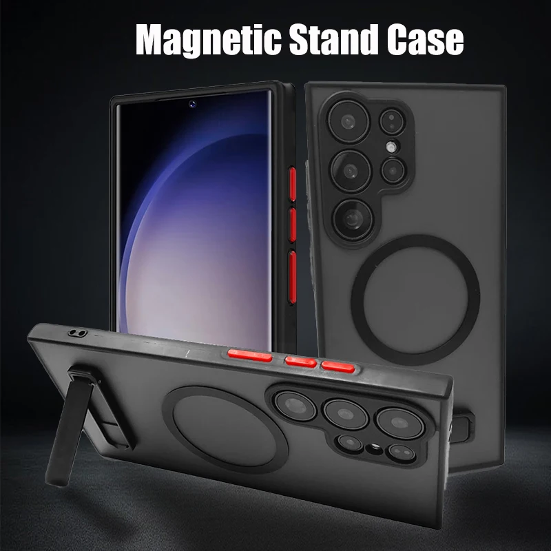 Color: Beige, Material: Microfiber - UYUXIO Translucent Magnetic Mobile Phone Case with Kickstand for Samsung Galaxy S25 Ultra S24 S23 FE S22 Plus Slim Stand Cover