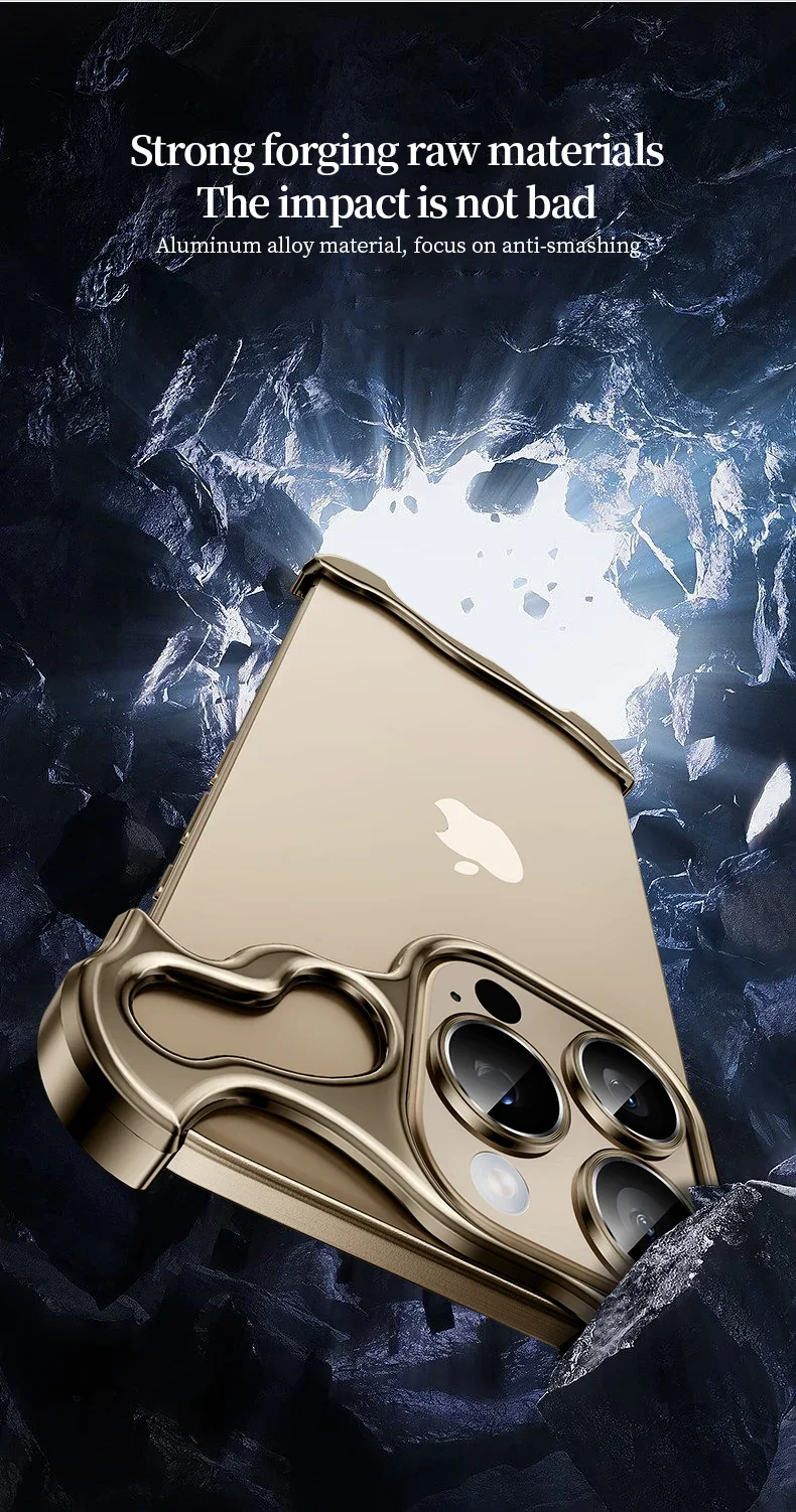 Aluminum Metal Rimless Phone Case for iPhone 16 15 14 Plus 13 12 Pro Max Lens Protective Film Hollow Logo Cooling Accessory Case
