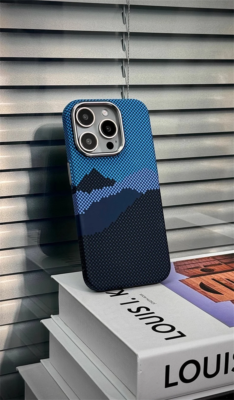 Color: Beige, Material: PP - Luxury Alloy Lens 3D Relief Peak Carbon Fibre Pattern Case For iPhone 13 14 15 16 Pro Max Slim Shockproof PC Cover For Magsafe